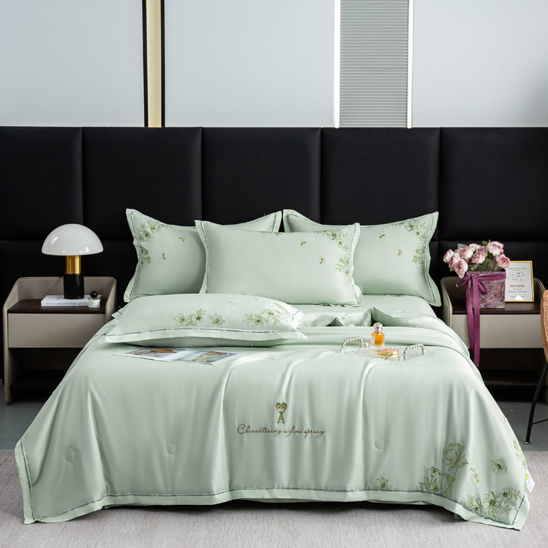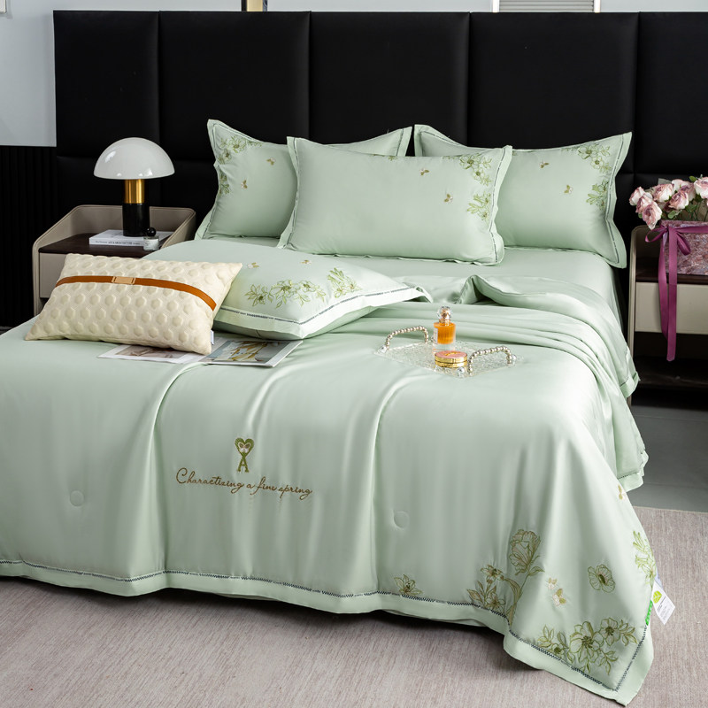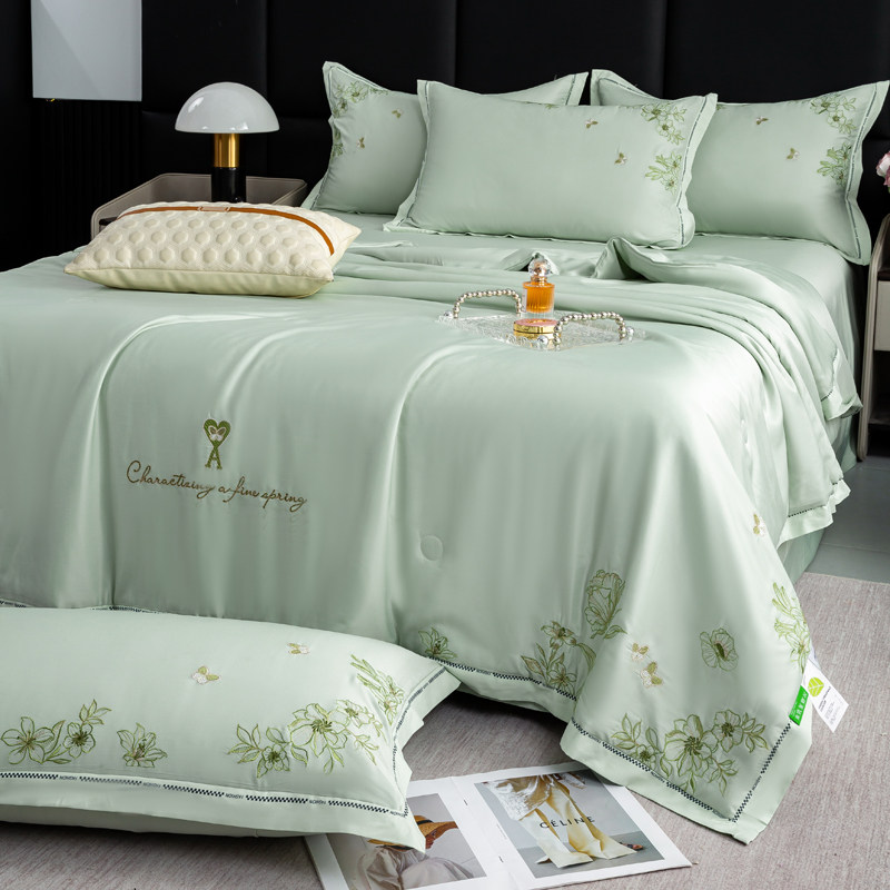 水洗莱赛尔天丝刺绣夏被四件套空调被夏凉被冰丝床品套件夏季夏天
