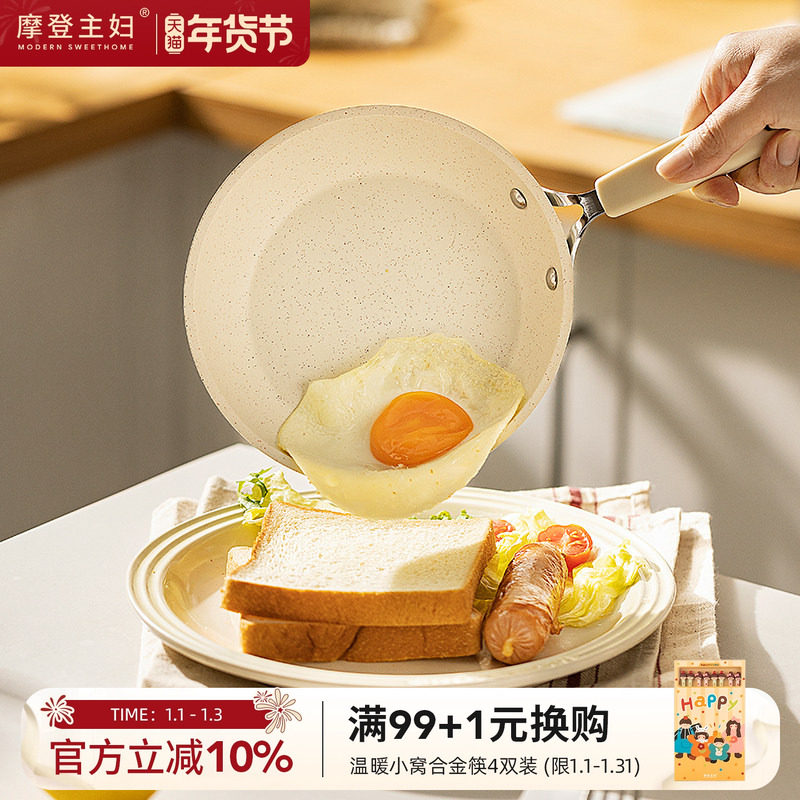 摩登主妇麦饭石煎蛋锅平底锅小锅不粘锅婴儿辅食家用一人食小煎锅