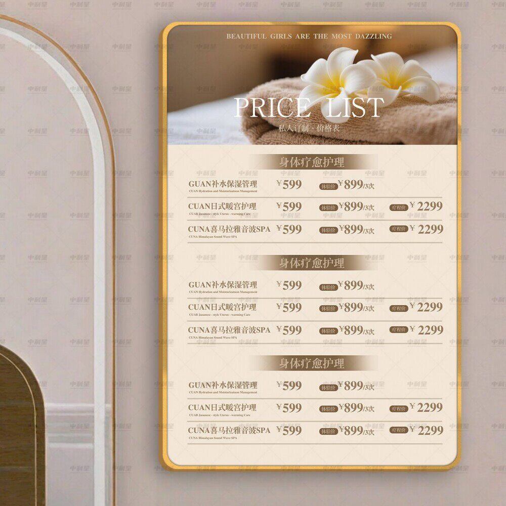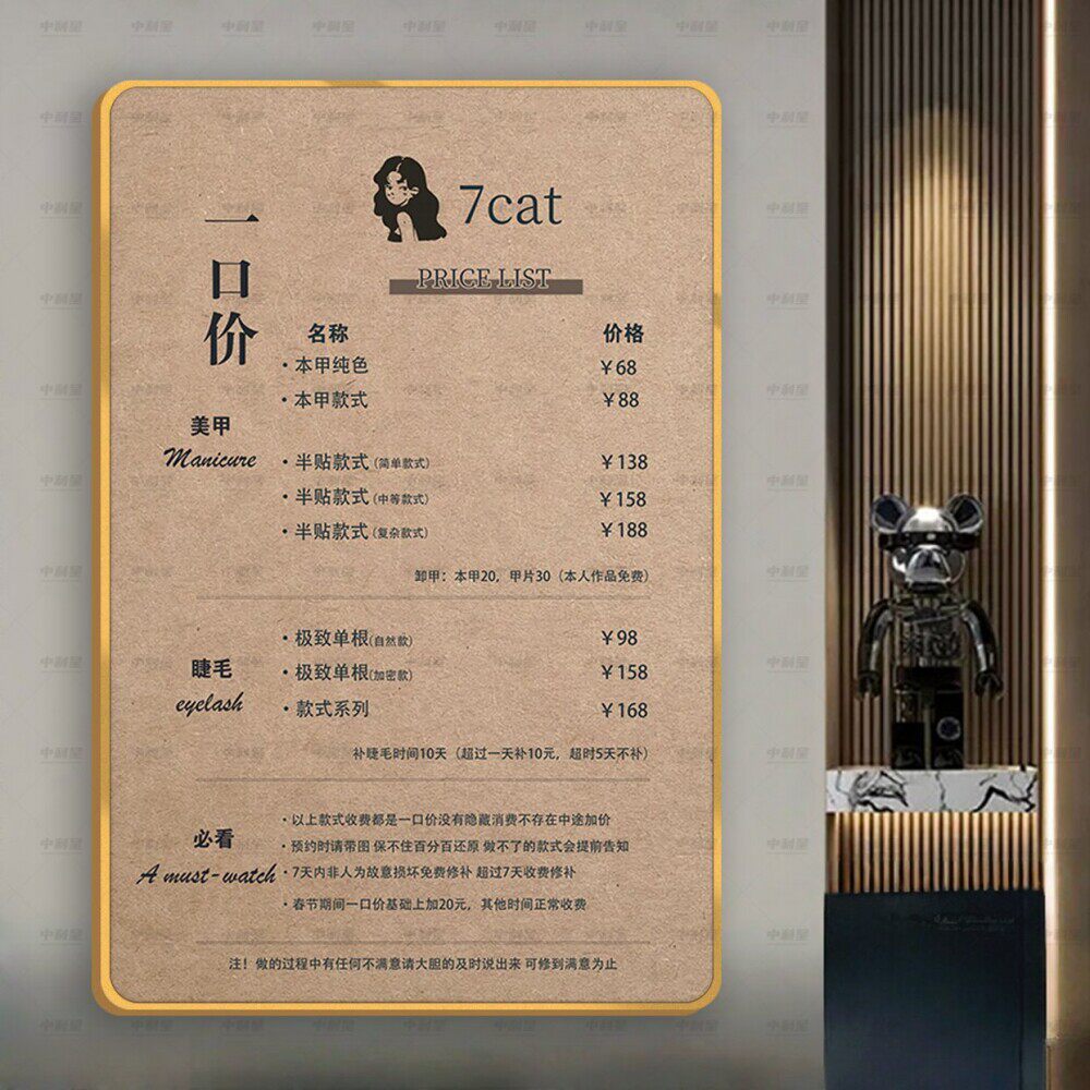 美容院价格表价目册美业价目表设计制作牌海报定制挂墙美甲美睫店养生店高档价目表展示牌广告宣传画贴纸墙贴