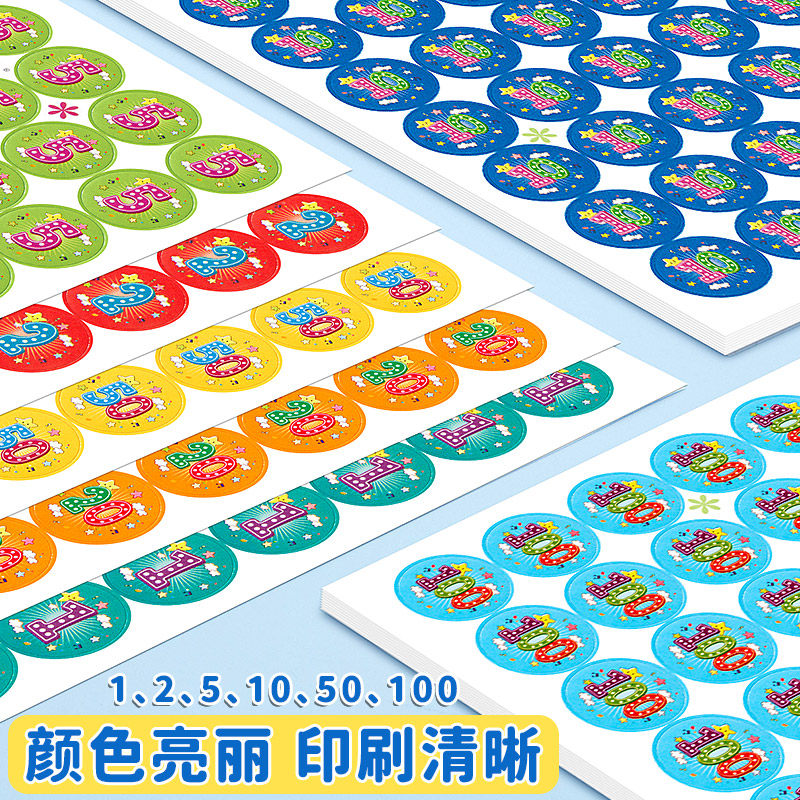 小学生积分贴纸儿童奖励贴纸幼儿园宝宝卡通数字贴可爱集赞表扬贴老师父母鼓励孩子学习分值小贴画集章卡贴纸
