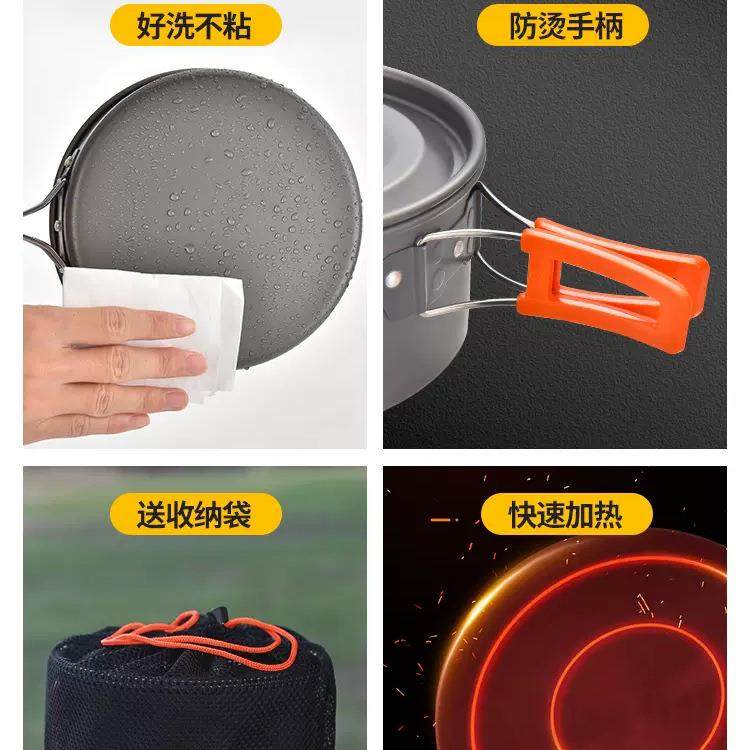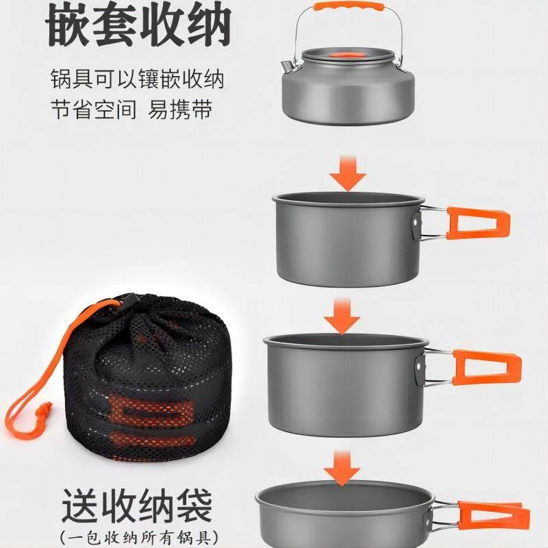 户外用品野营野炊便携折叠套锅2-3人套装炊具茶壶煎锅组合送餐具