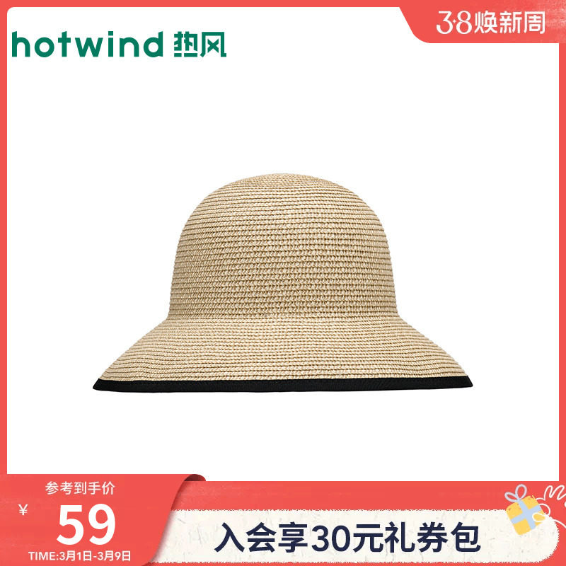 热风2026年夏季新款女士包边蝴蝶结草帽法式圆顶优雅精致