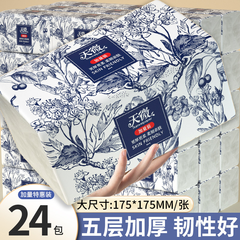 漫花400张抽纸5层加厚纸巾卫生纸面巾餐巾纸宿舍家用30包厕所手纸