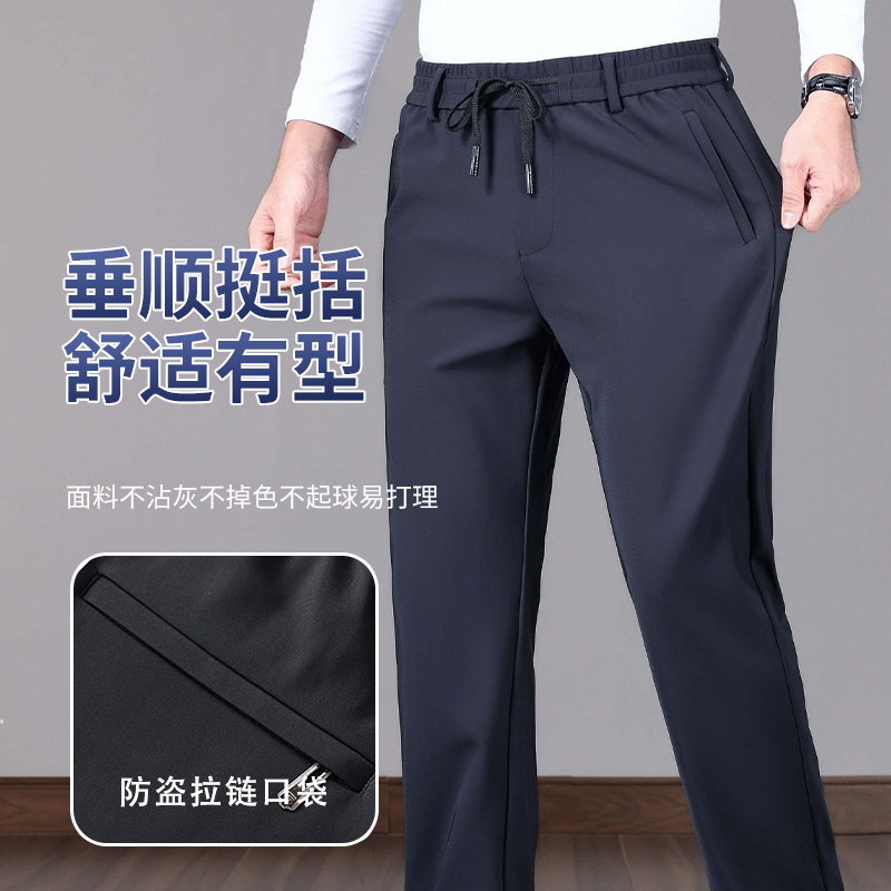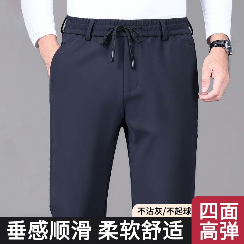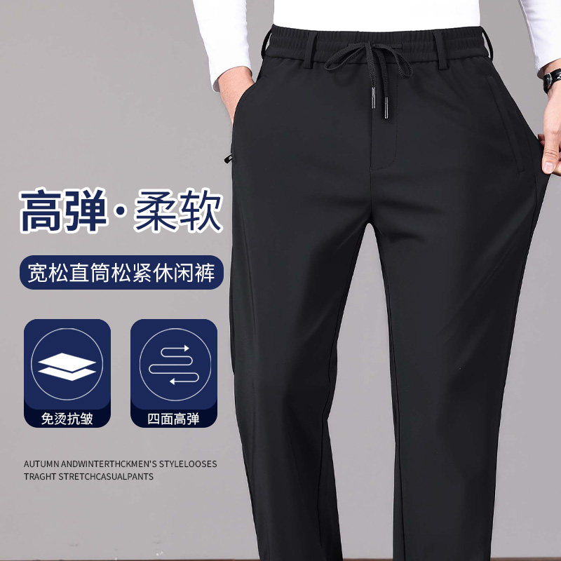 男士2025新款休闲裤弹力松紧腰运动裤春秋季加厚男款商务直筒长裤