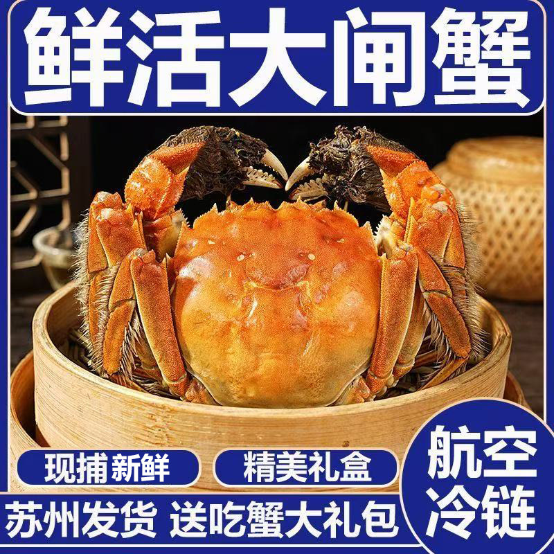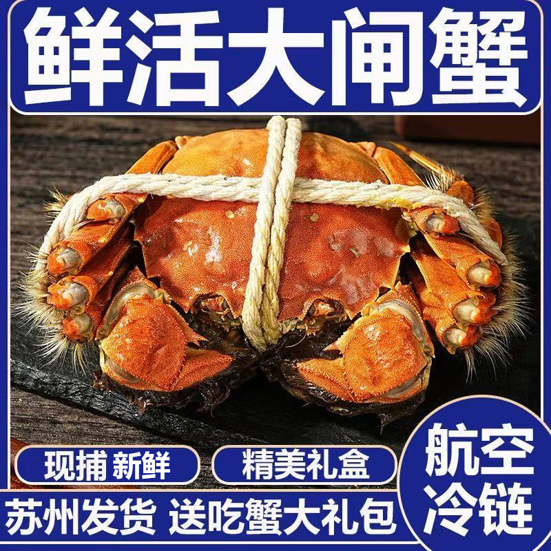 现货鲜活大闸蟹公母螃蟹生鲜海鲜水产礼盒装8只含绳工具苏州发货
