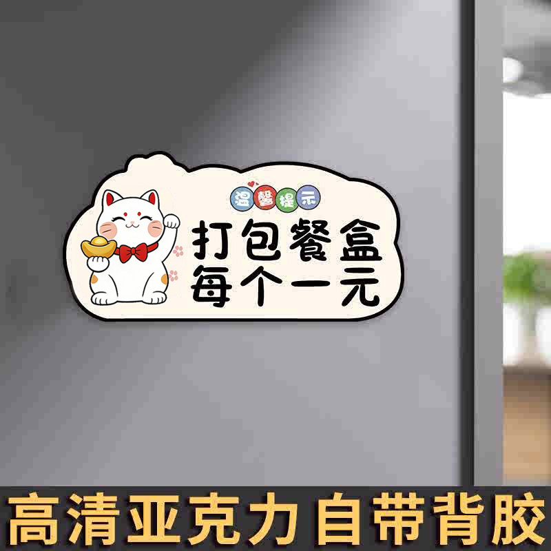 餐饮店免费小菜请先付款再就餐标识牌免费自取餐具标牌餐具收费提示牌打包加一元提示牌贴纸打包盒收费指示牌