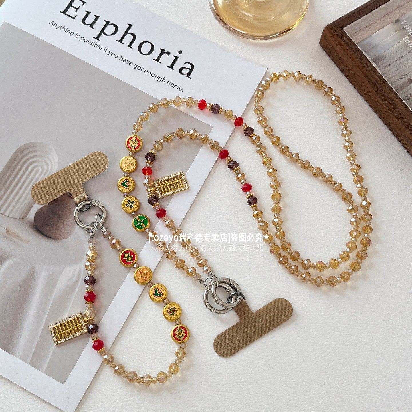 女士聚财手机链五路财神黄水晶金算盘吊坠招财链条斜挎可背新中式背带挂链女高级贵气富婆气质精致包包挂饰壳