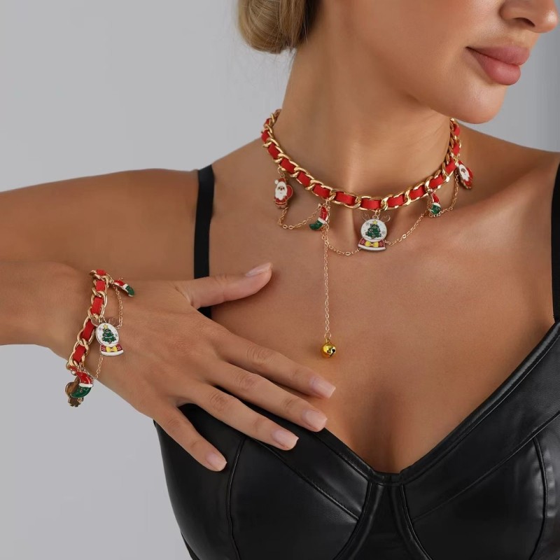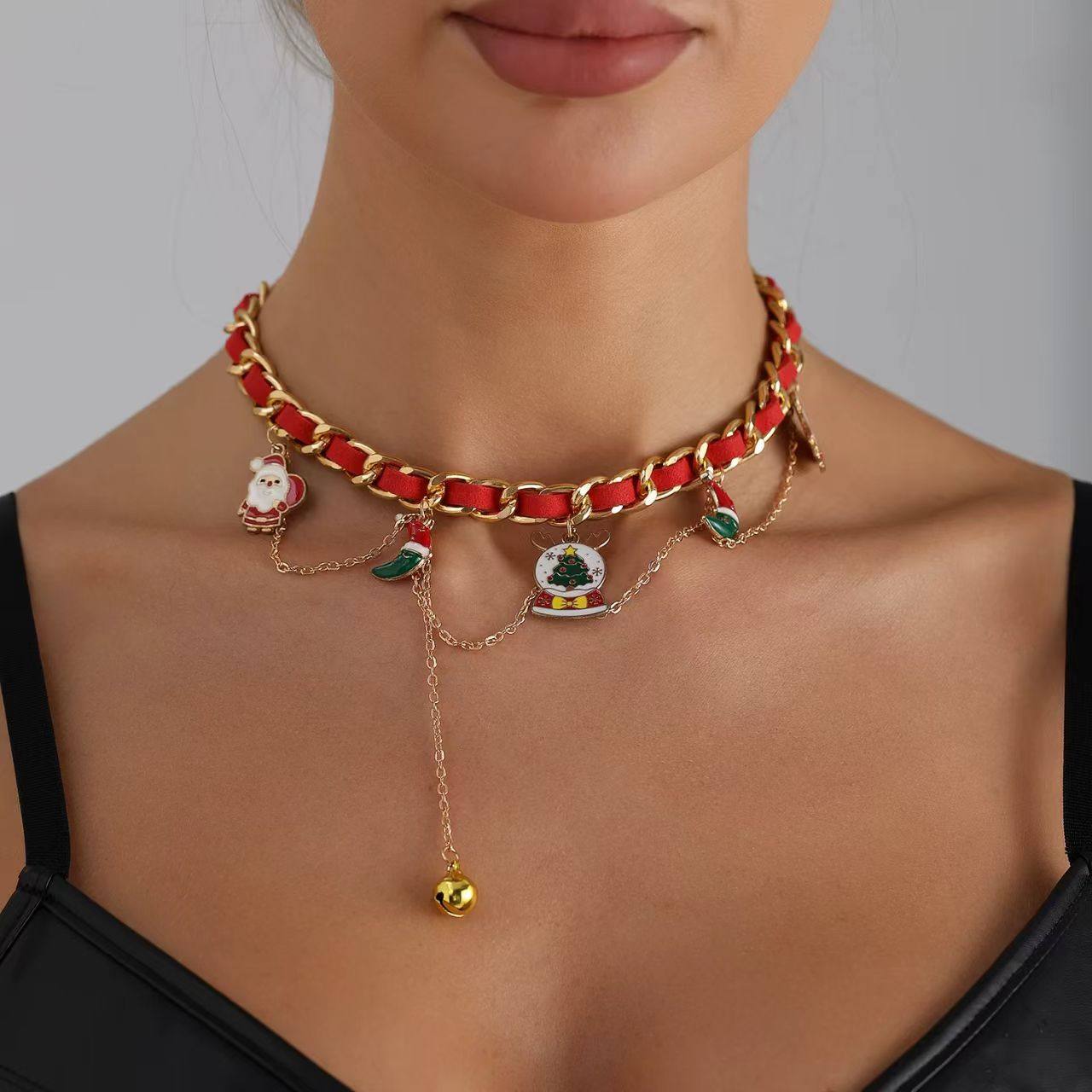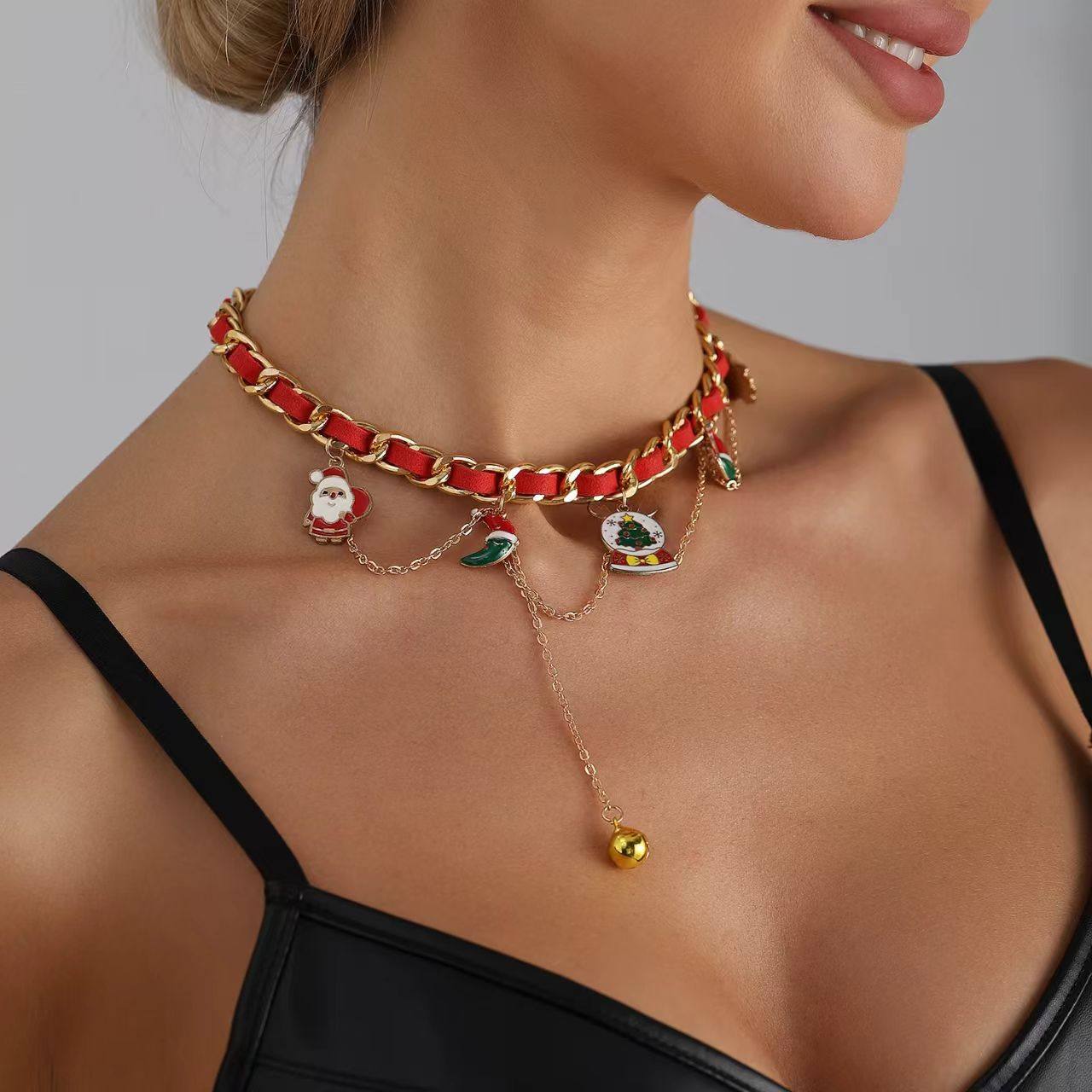 2026卡通项链小众设计圣诞老人铃铛流苏吊坠丝带编织颈链锁骨闺蜜