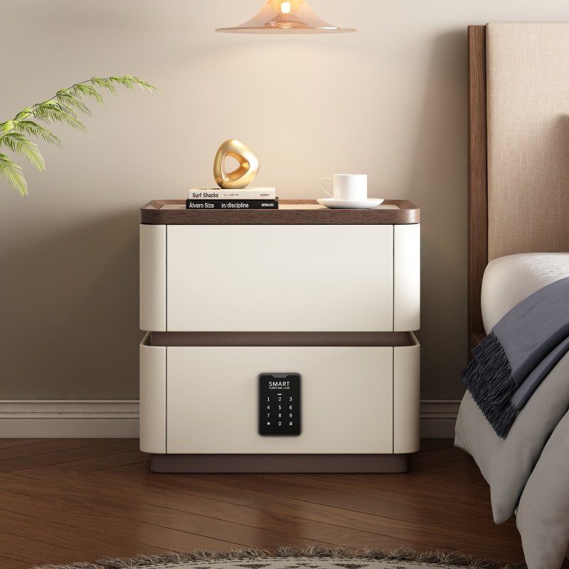 卧室实木床头柜保险箱现代家用2025爆款带锁轻奢高级感小型收纳柜