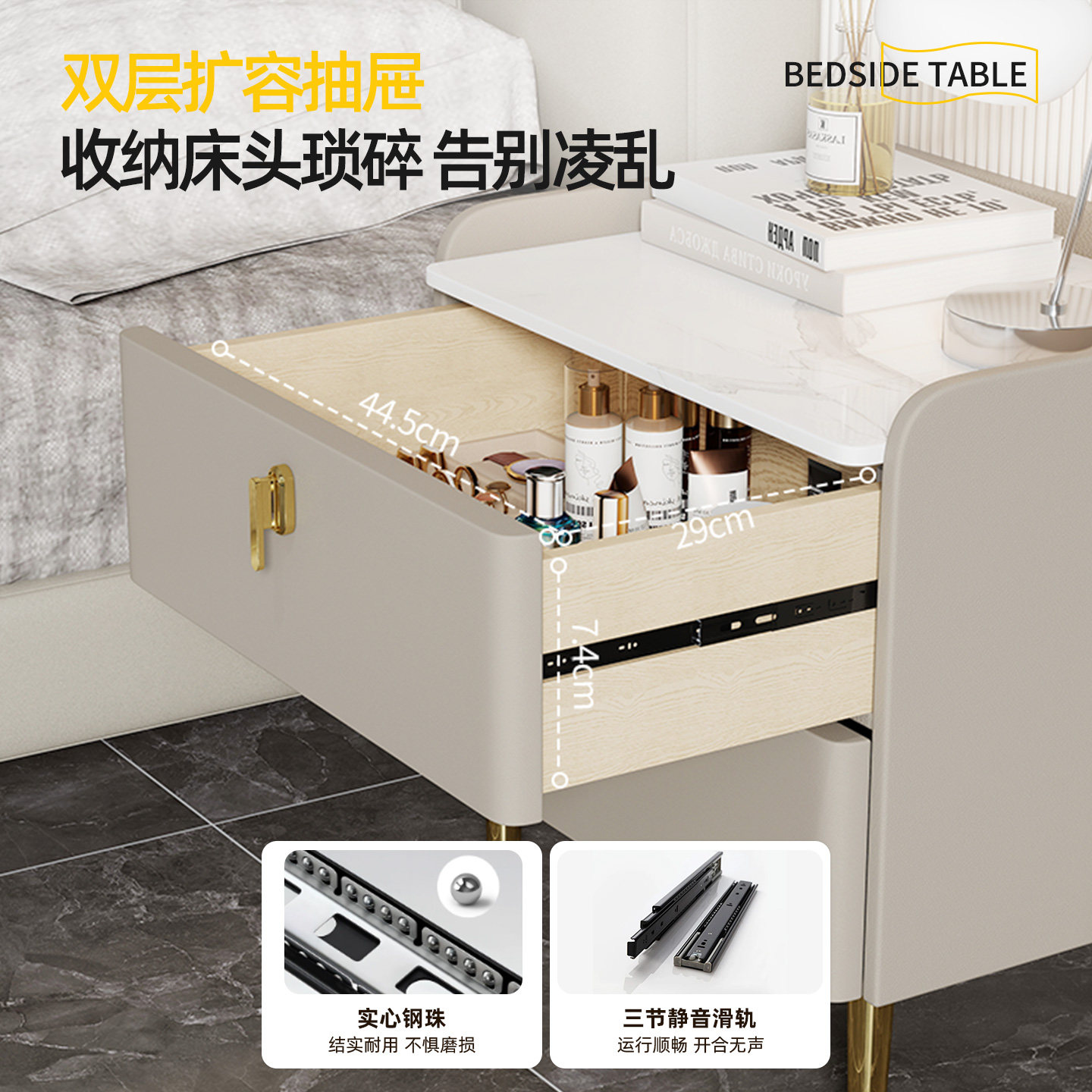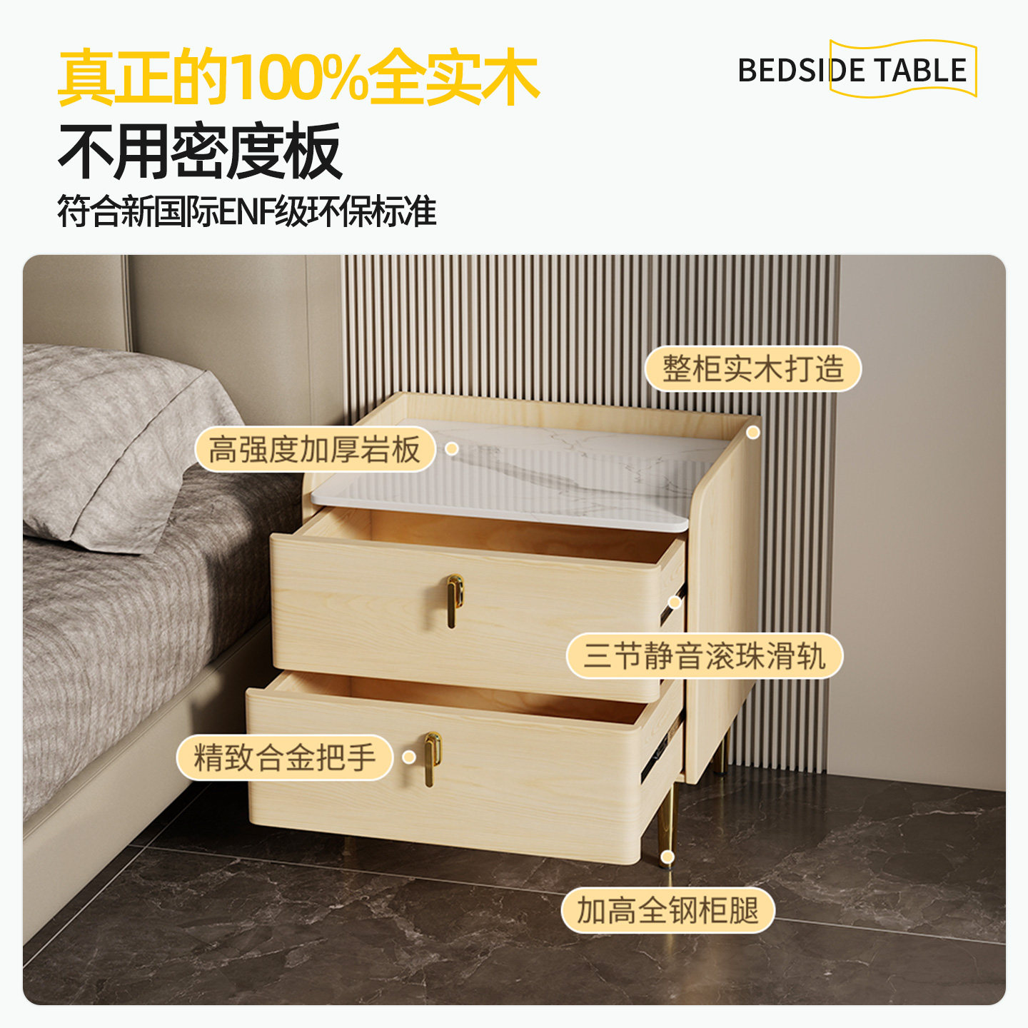实木床头柜家用简约小型床边柜收纳柜现代轻奢高级感岩板储物柜子