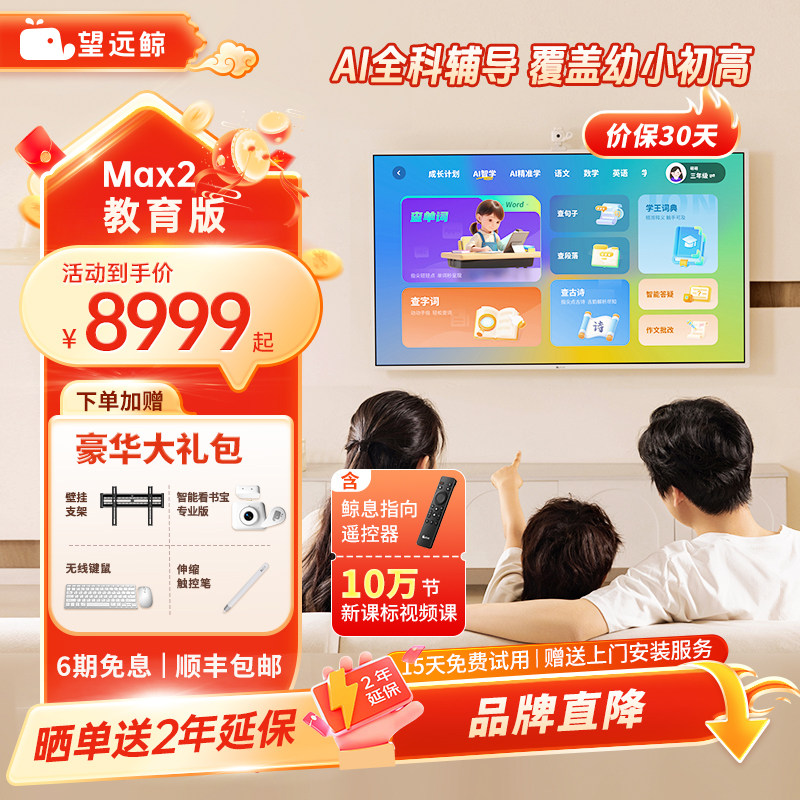 【新品】望远鲸65英寸护眼网课屏Max2 学生专用儿童平板电脑学习机闺蜜机移动电视亲子机亲子屏网课4K显示器