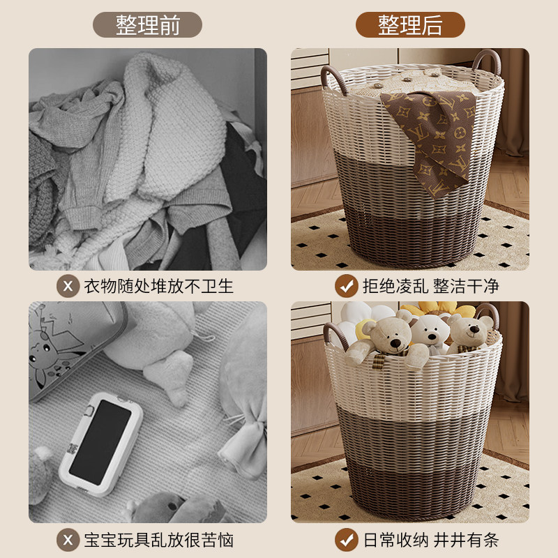 脏衣篓家用高颜值装脏衣服收纳筐大容量仿藤编脏衣篮卫生间收纳框