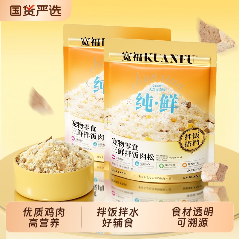 宽福猫零食冻干蛋黄鸡胸肉猫咪拌饭肉松猫粮伴侣挑食营养罐头鸡肉