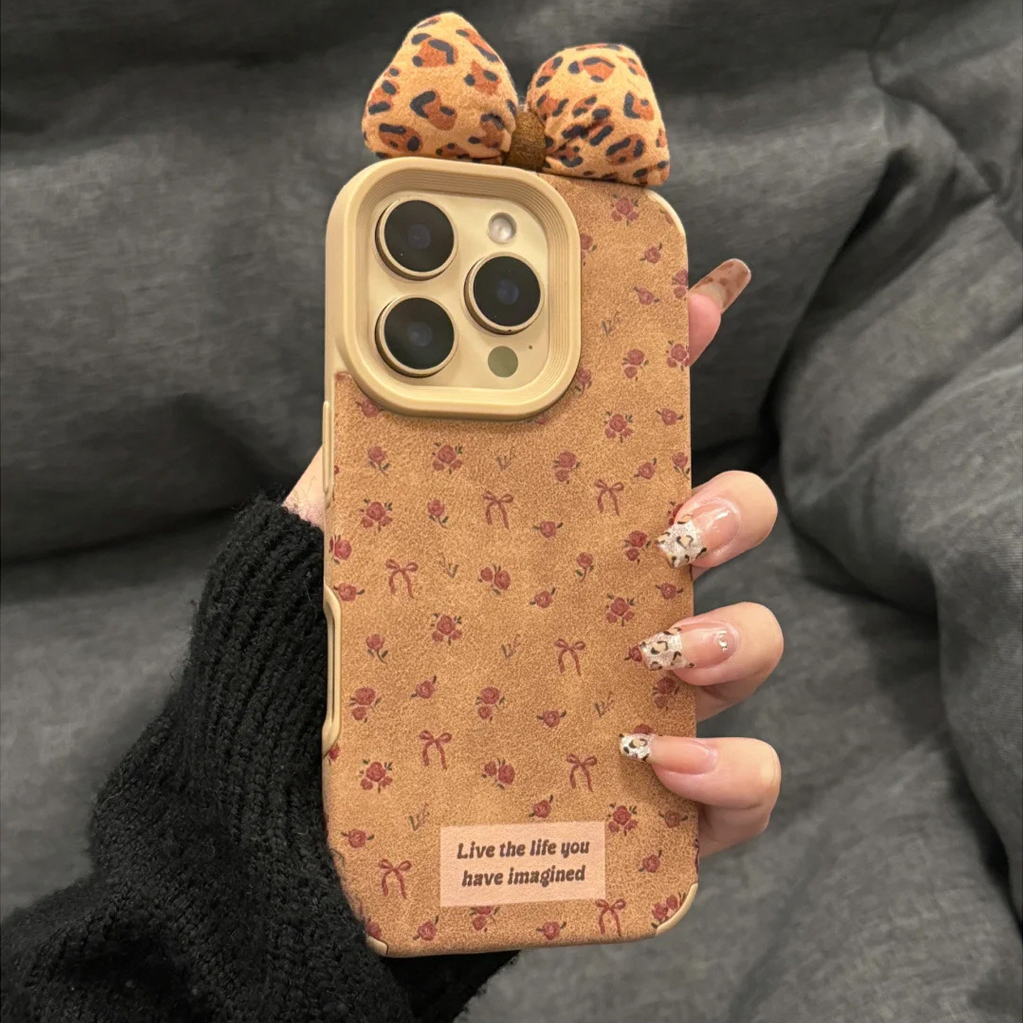 豹纹蝴蝶结适用苹果16promax手机壳16新款iphone15promax创意13美拉德高级翻毛皮14PRO防摔12小众11全包女款