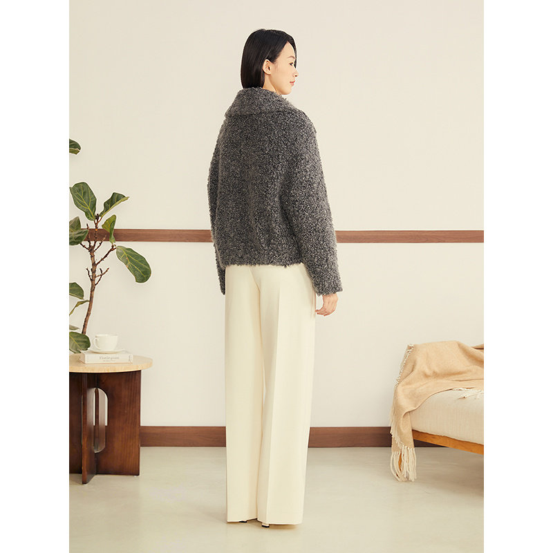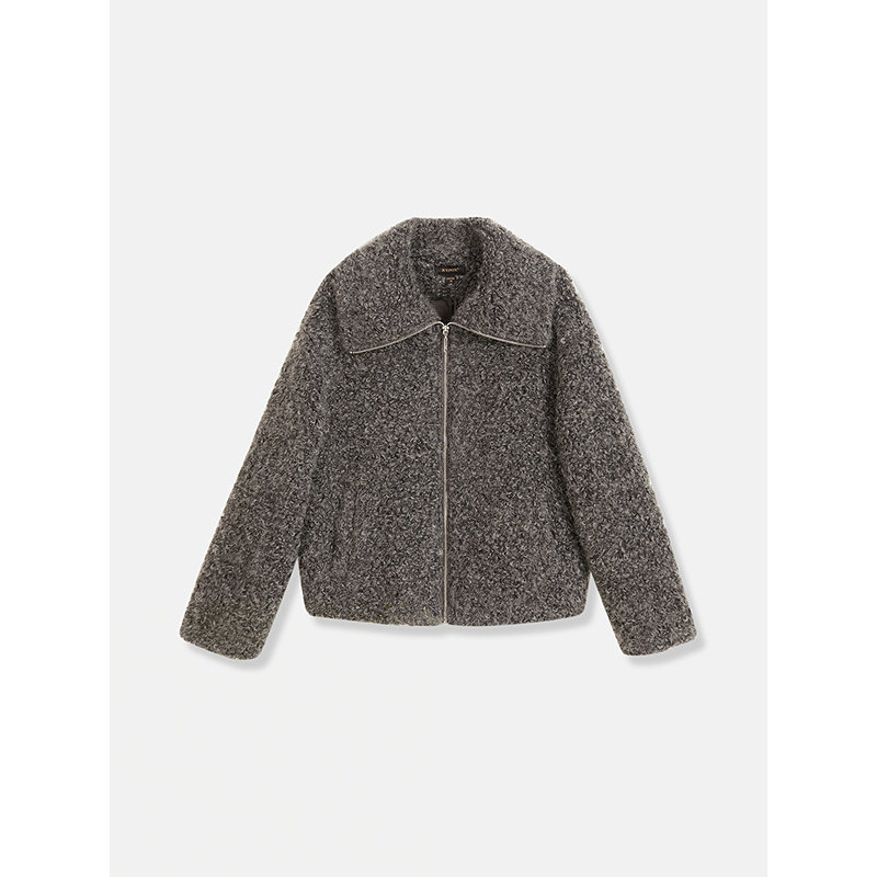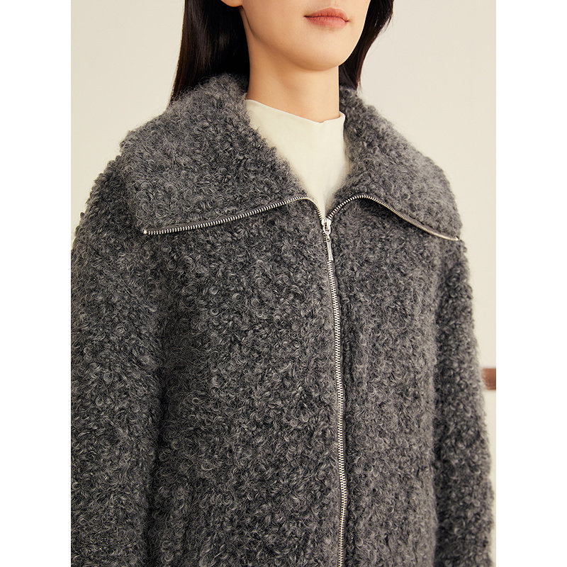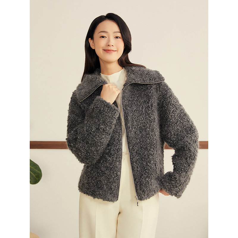 YINER音儿2025冬季新款法式羊毛马海毛混纺卷卷毛大翻领短外套