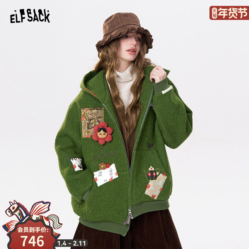 妖精的口袋【100%羊毛】趣味贴布毛呢外套女2025年冬新款厚外套