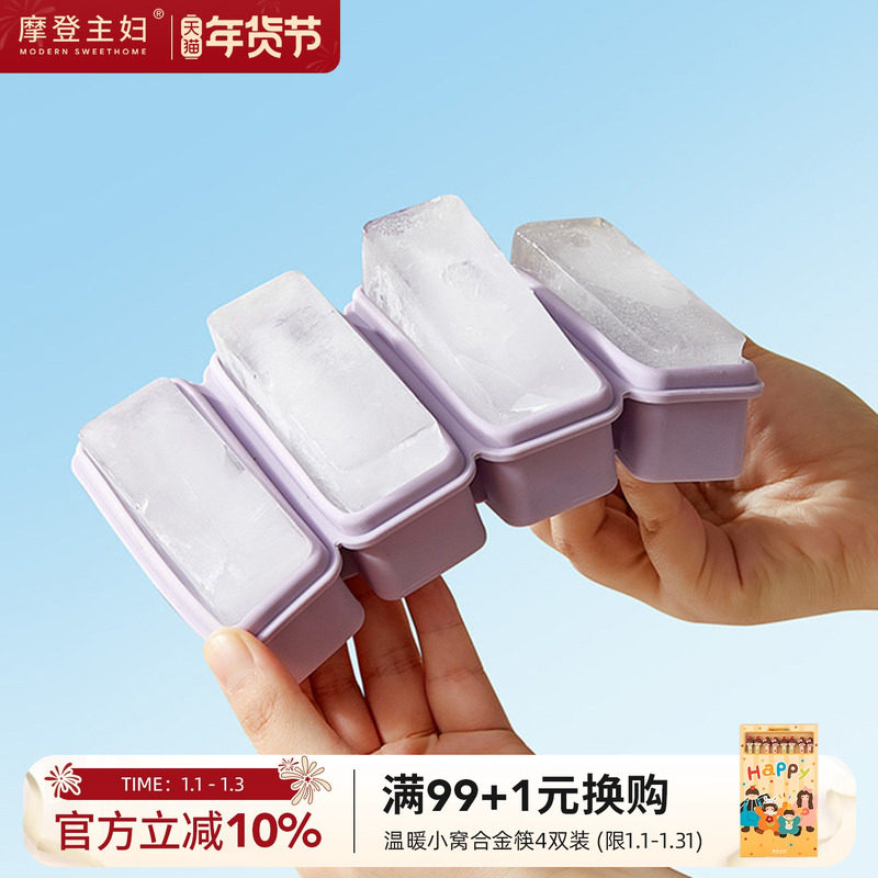 摩登主妇长条冰块模具家用硅胶食品级冰箱制冰冷冻格大号冰格模具