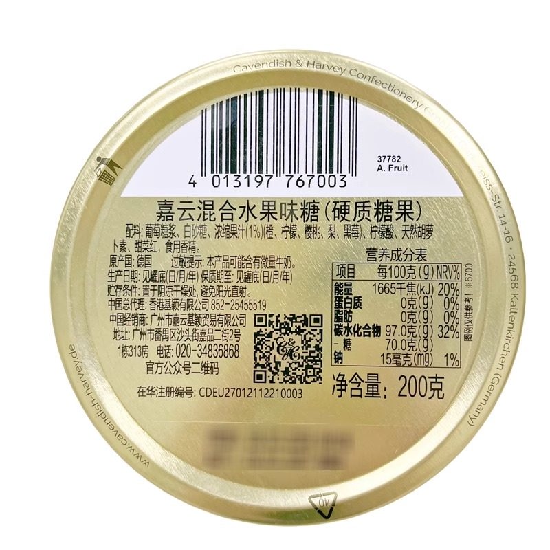 德国进口嘉云水果糖200g混合水果味薄荷硬糖官方旗舰店喜糖铁盒罐
