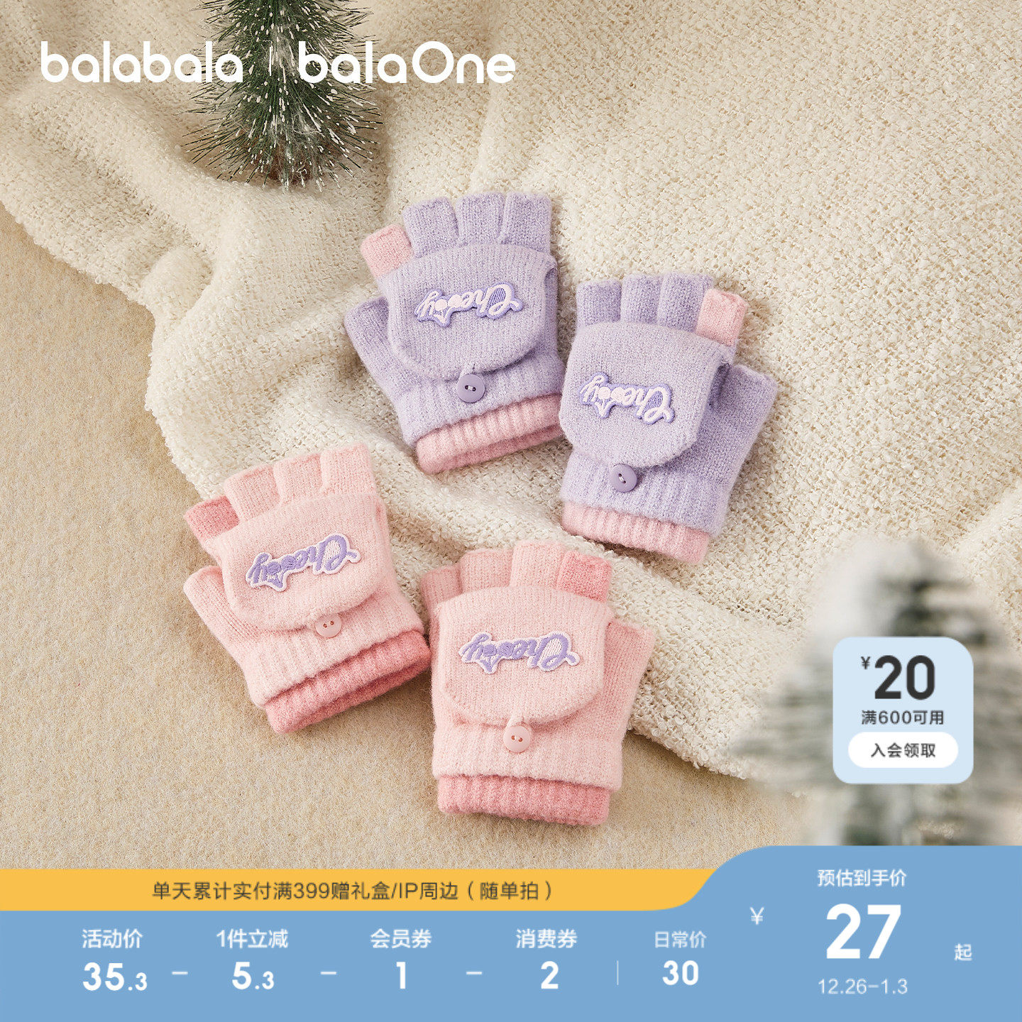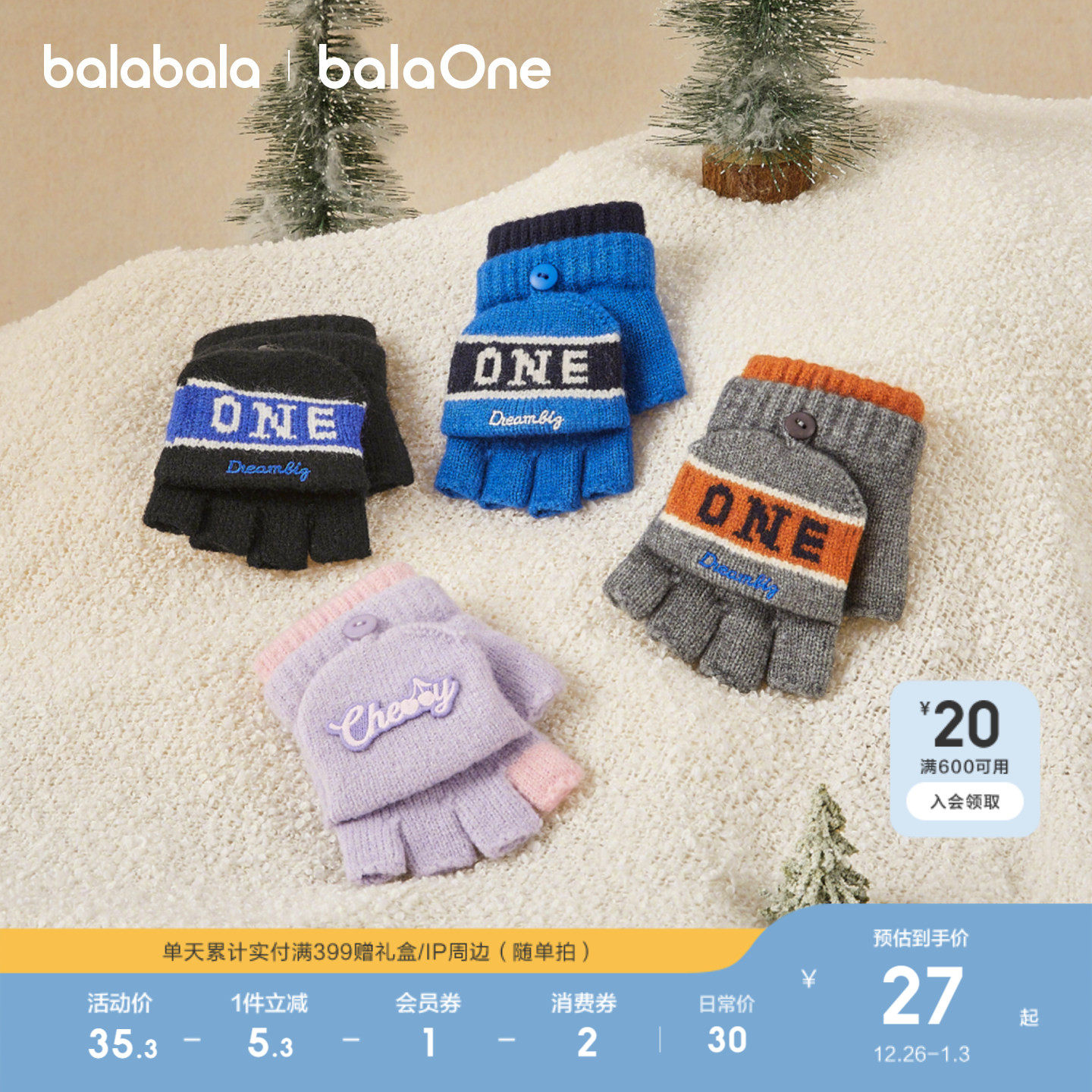 【balaOne】巴拉巴拉儿童手套男童女童半指翻盖手套保暖2025新款