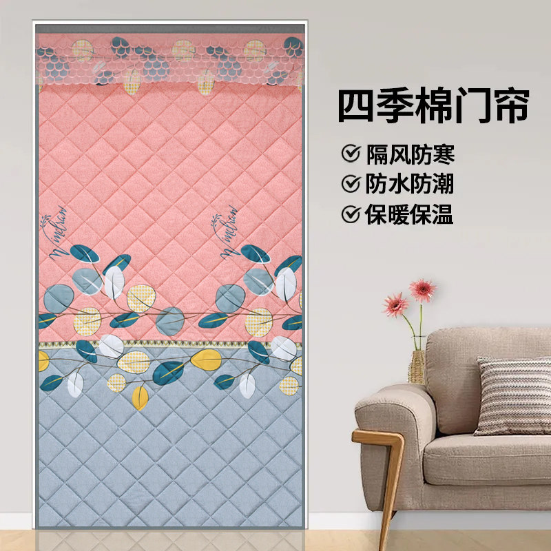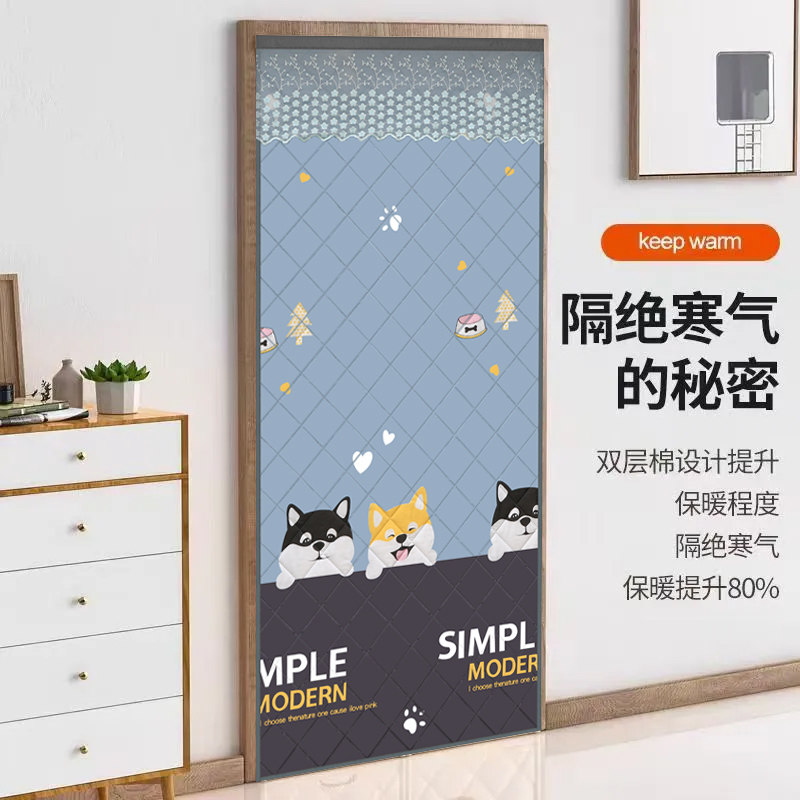 冬季夹棉保暖门帘隔断免打孔卧室遮光双面防寒厨房防风布艺棉门帘