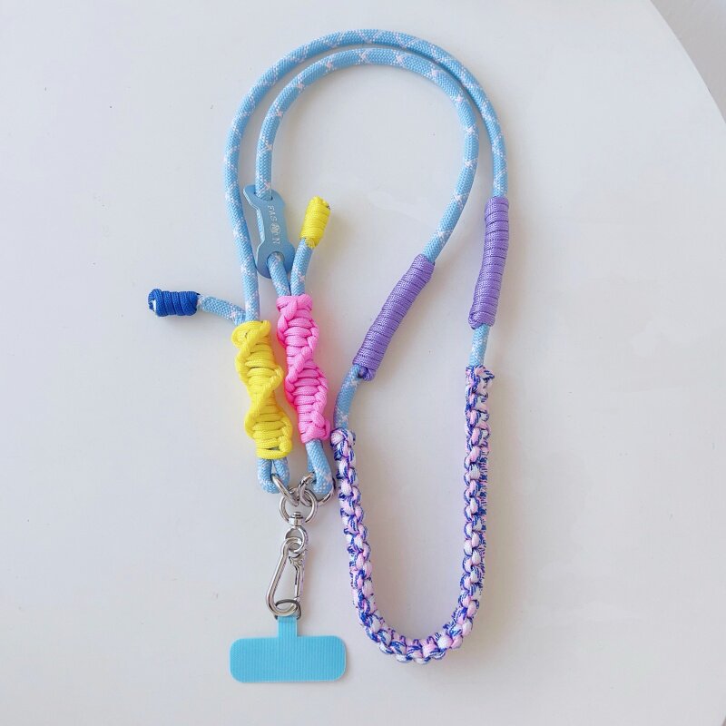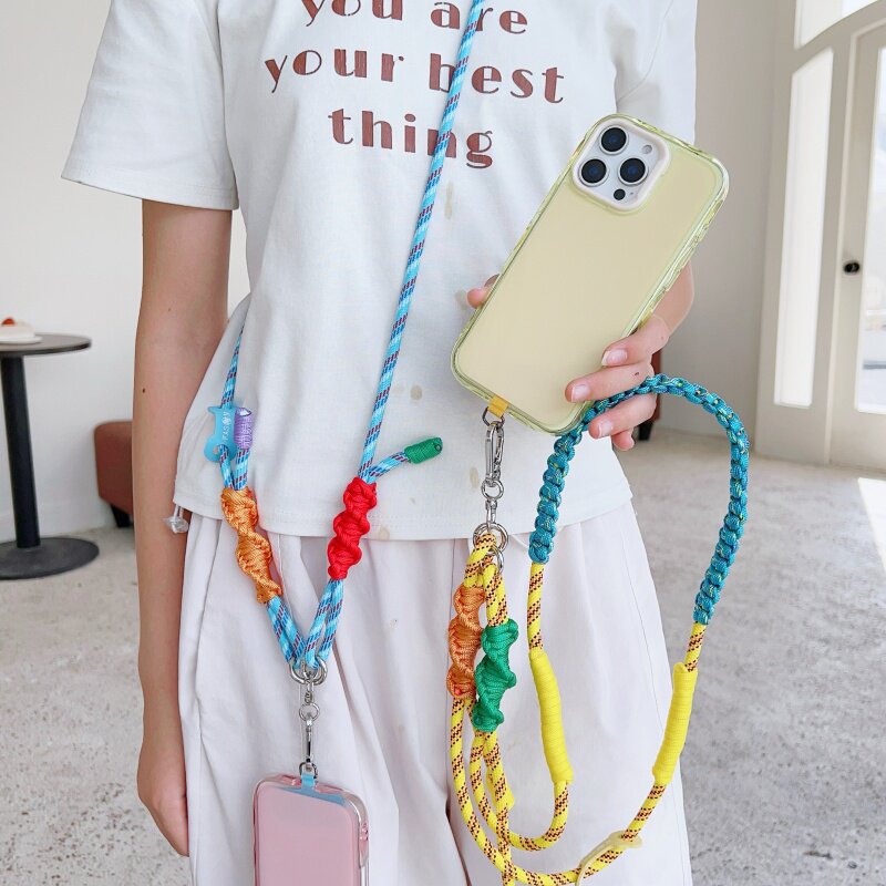 韩系个性创意扭扭编织绳手机挂绳斜跨可背链条手机壳套夹片式挂链挂件背带可调节长短挂脖长绳户外旅游手机绳