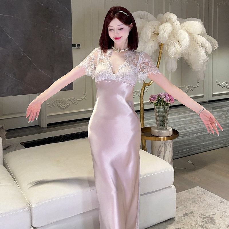 RoseTree冰丝睡裙女春秋长袖蕾丝性感宫廷公主风纯欲睡衣2025新款