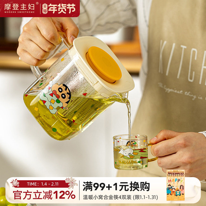【摩登主妇&蜡笔小新】玻璃冷水壶泡茶壶杯子套装家用水杯凉水壶