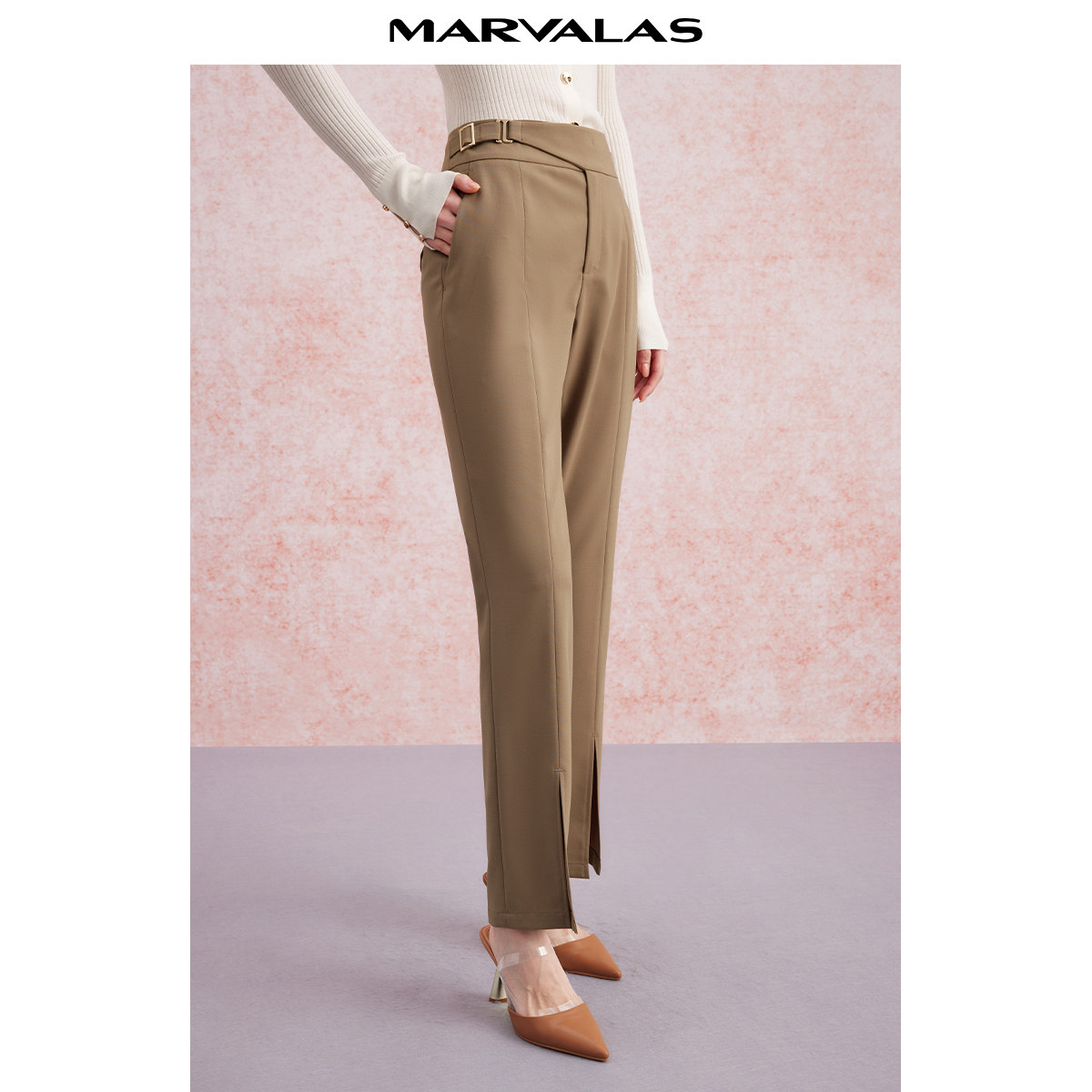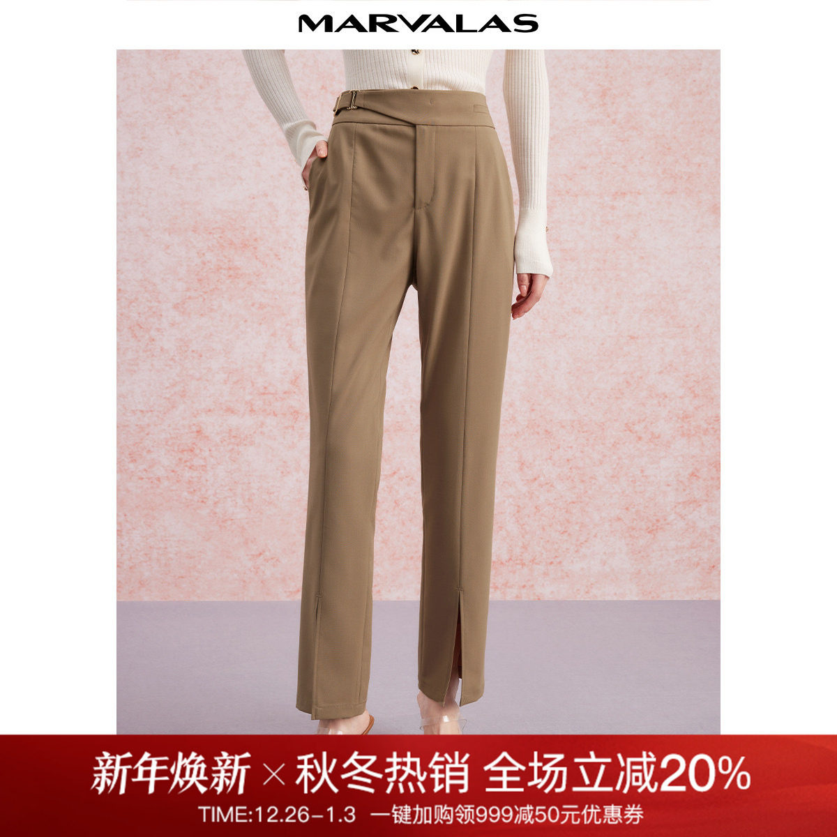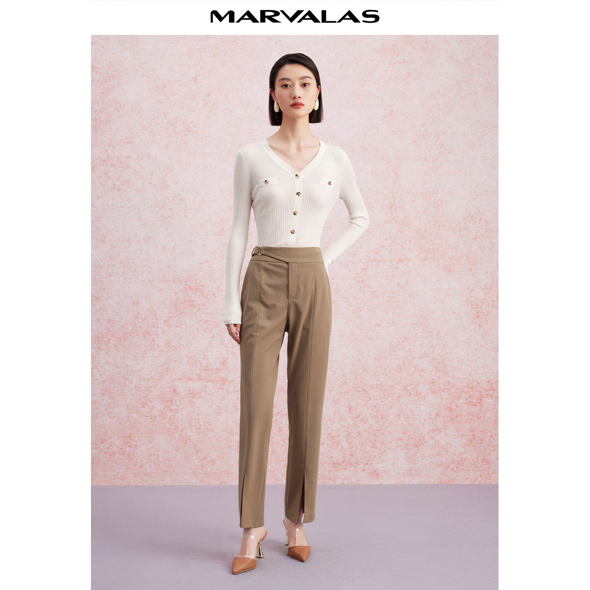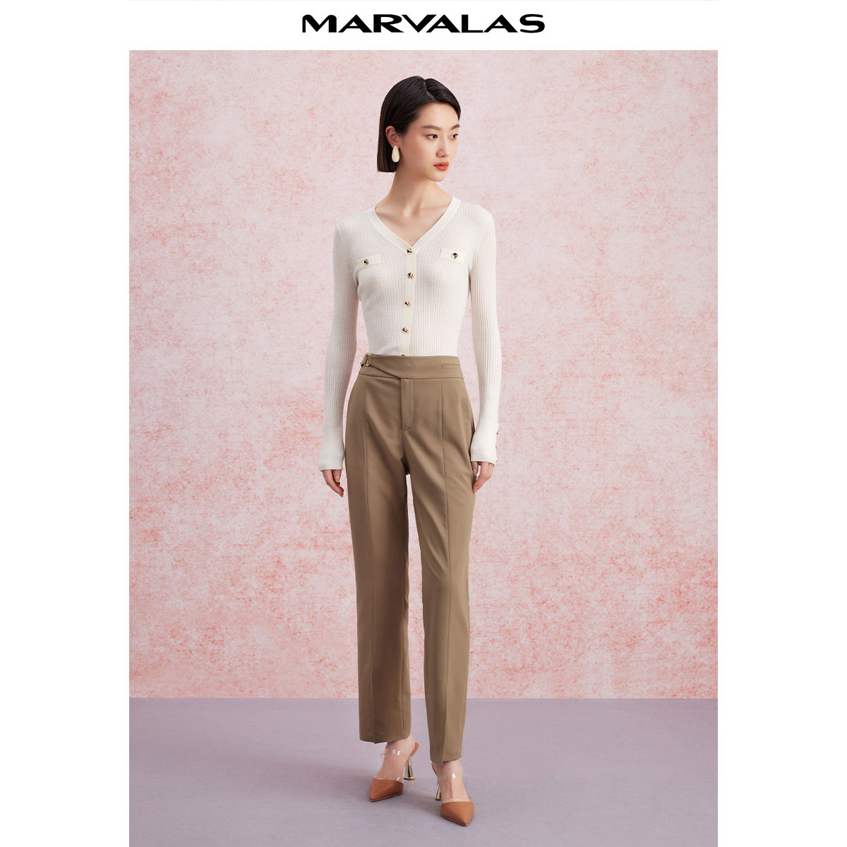 曼德诗简约职场休闲裤2025夏装新款设计感通勤文艺风优雅气质长裤