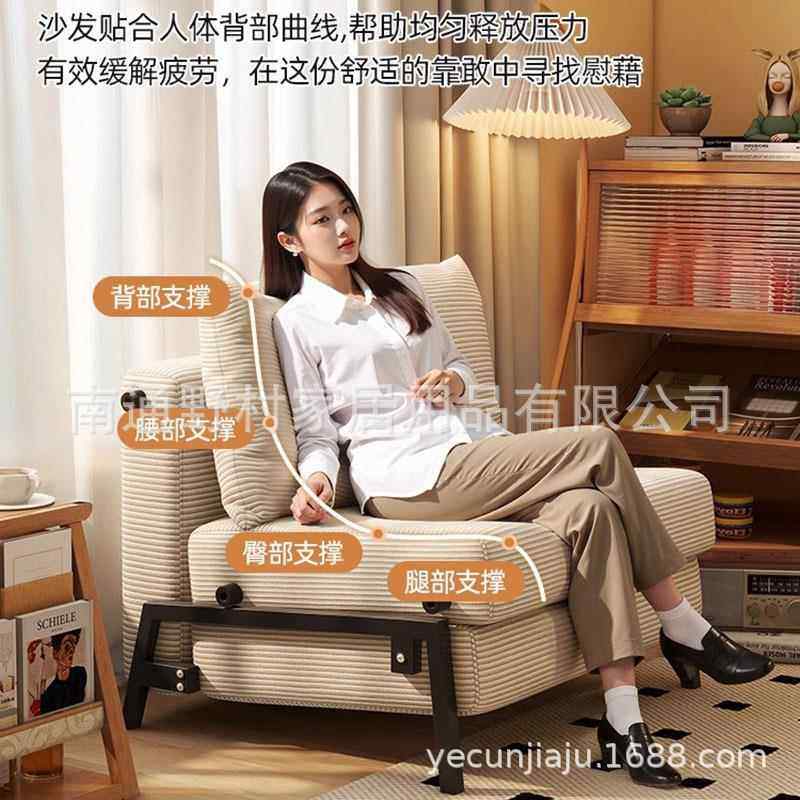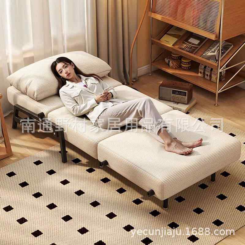 沙发床折叠两用单人推拉床客厅书房阳台芯绒复古布艺小户型床笠