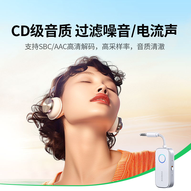 绿联aux蓝牙接收发射器车载转音频线3.5适配电视音响飞机无线耳机