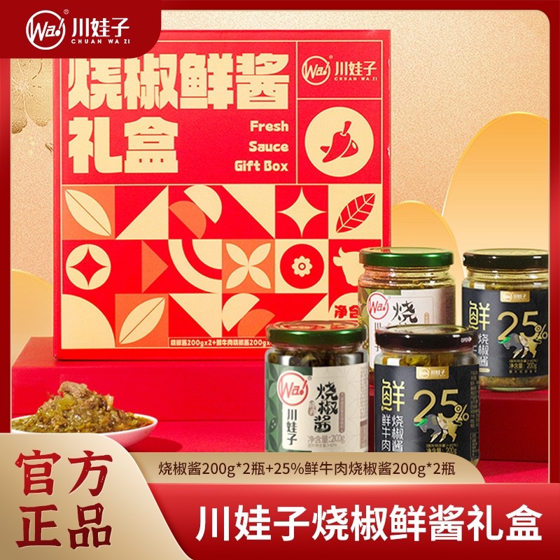 礼盒装川娃子烧椒酱辣椒酱下饭拌面拌饭农家酱4瓶装牛肉肉酱皮蛋