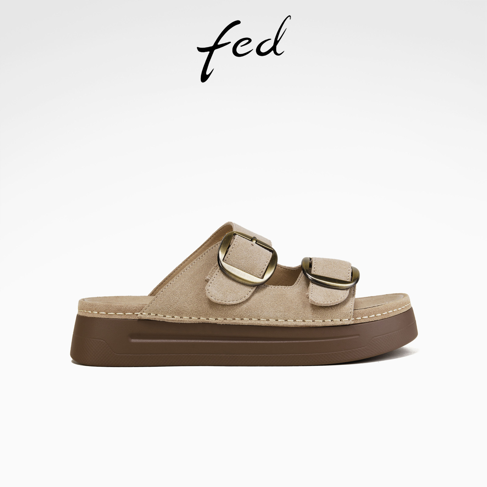 fed勃肯拖鞋夏季新款女鞋厚底凉拖懒人一字拖鞋女款S0519-YAB123