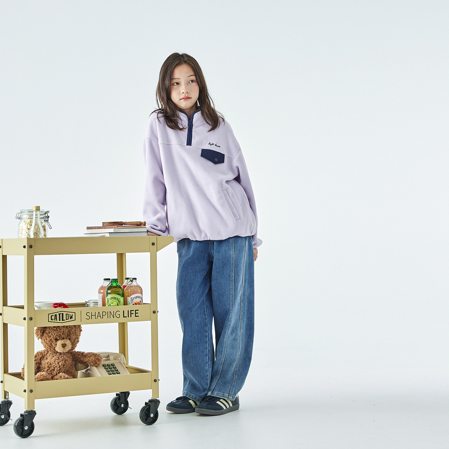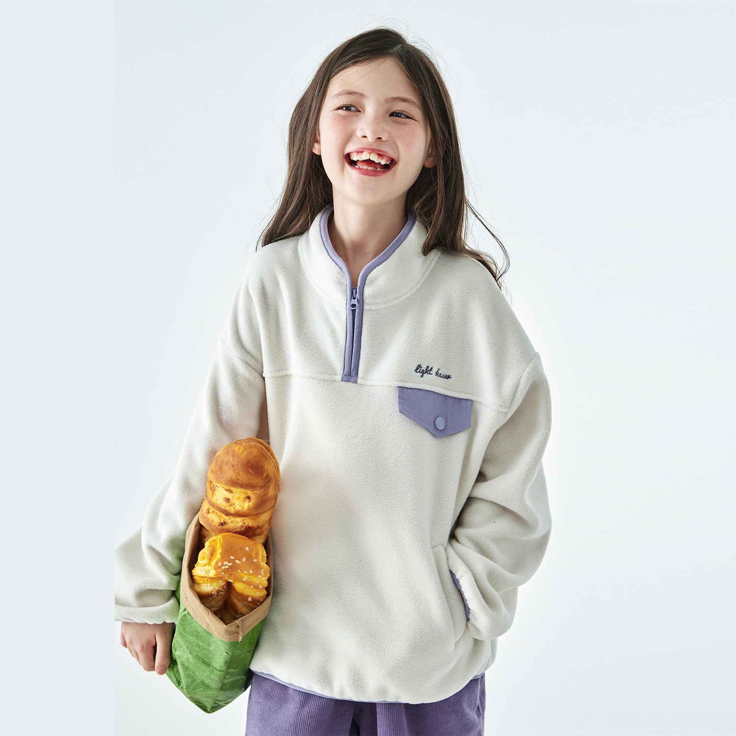 棵初2025年秋冬季新款亲子中大女童摇粒绒卫衣抗静电拼色口袋上衣