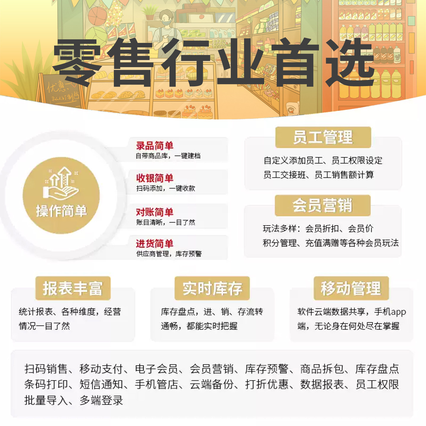 收银系统超市零售便利店进销存服装店饭店餐饮奶茶点餐棋牌茶楼扫码点单会员管理软件商用电脑一体商米收银机