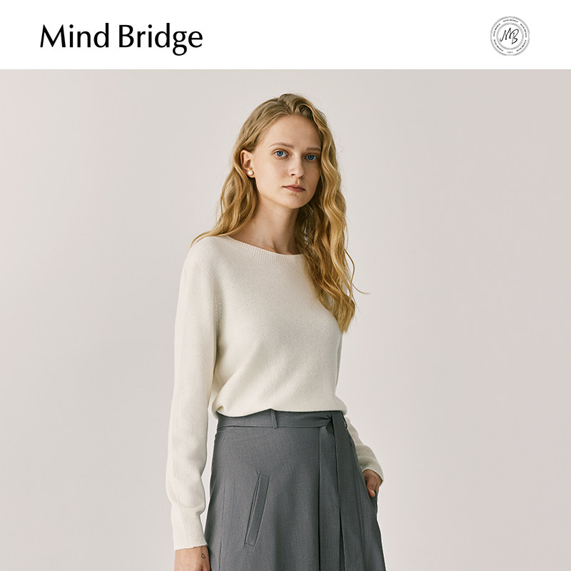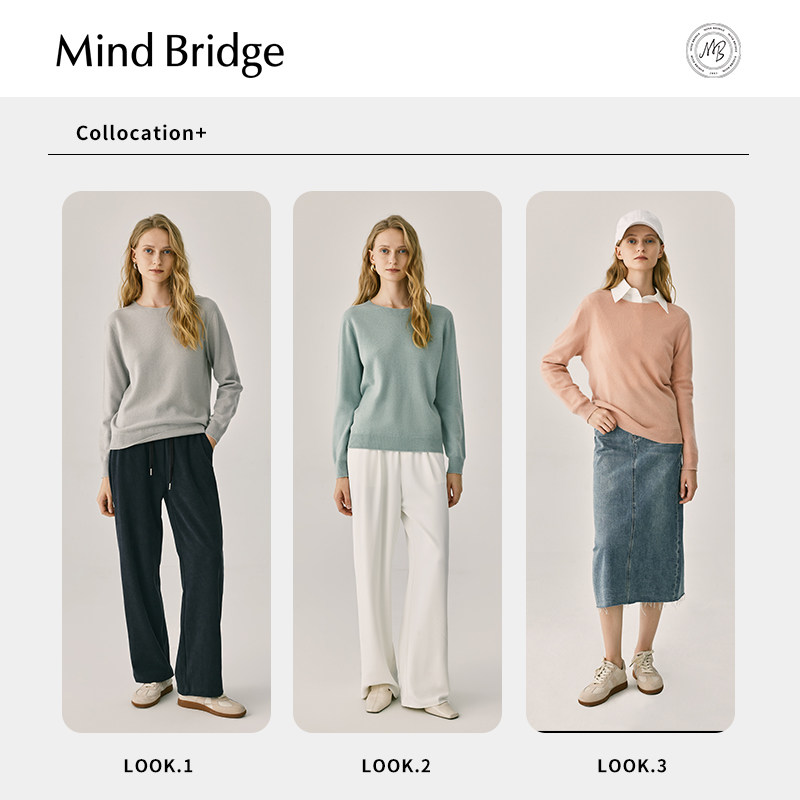 MB MindBridge【绵羊毛】2025新款圆领羊毛衫女毛衣秋季纯色针织