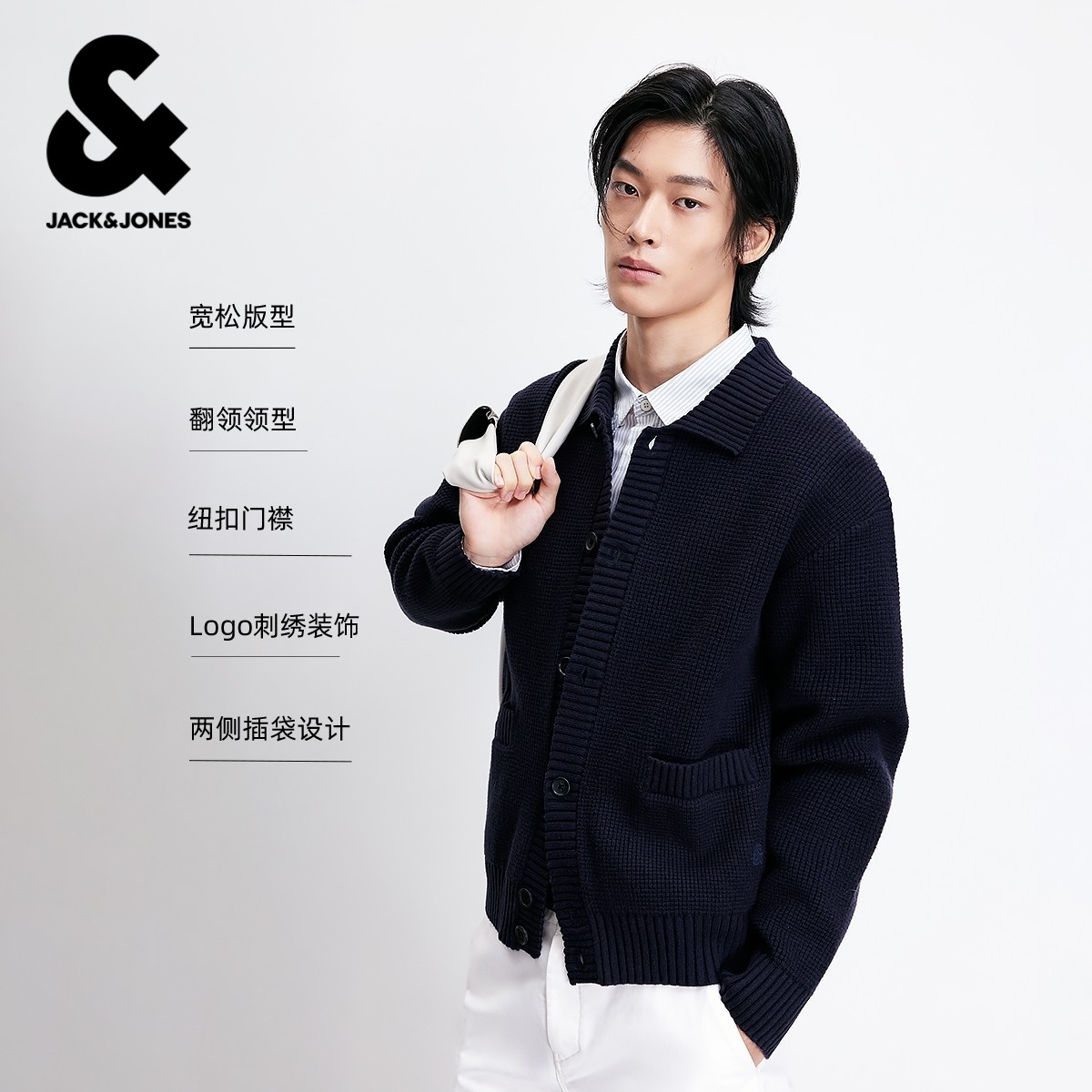 杰克琼斯男装春季新款毛衣开衫纯色经典简约翻领商务休闲毛针织衫