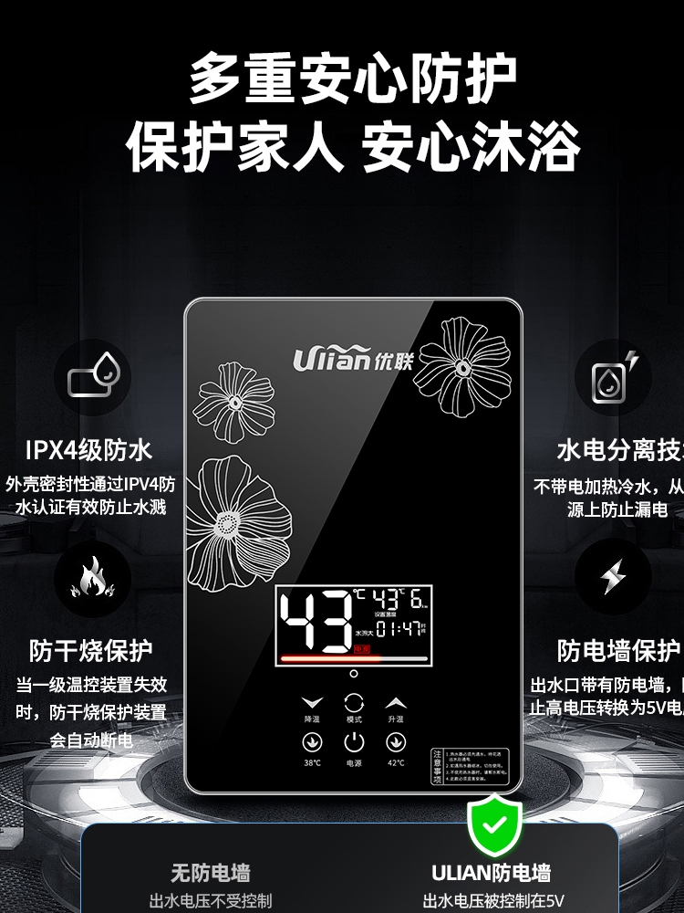 优联小型电热水器即热式智能小厨宝挂家用淋浴快速洗澡机恒温