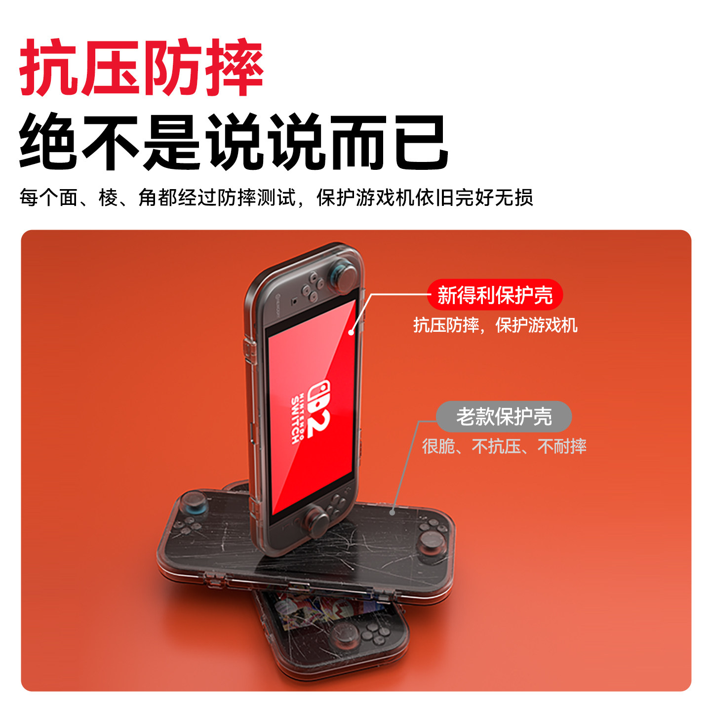 新得利任天堂Switch2保护壳NS2收纳盒透明全包保护套游戏掌机一体式硬壳出行便携卡带盒防摔抗压散热二代配件