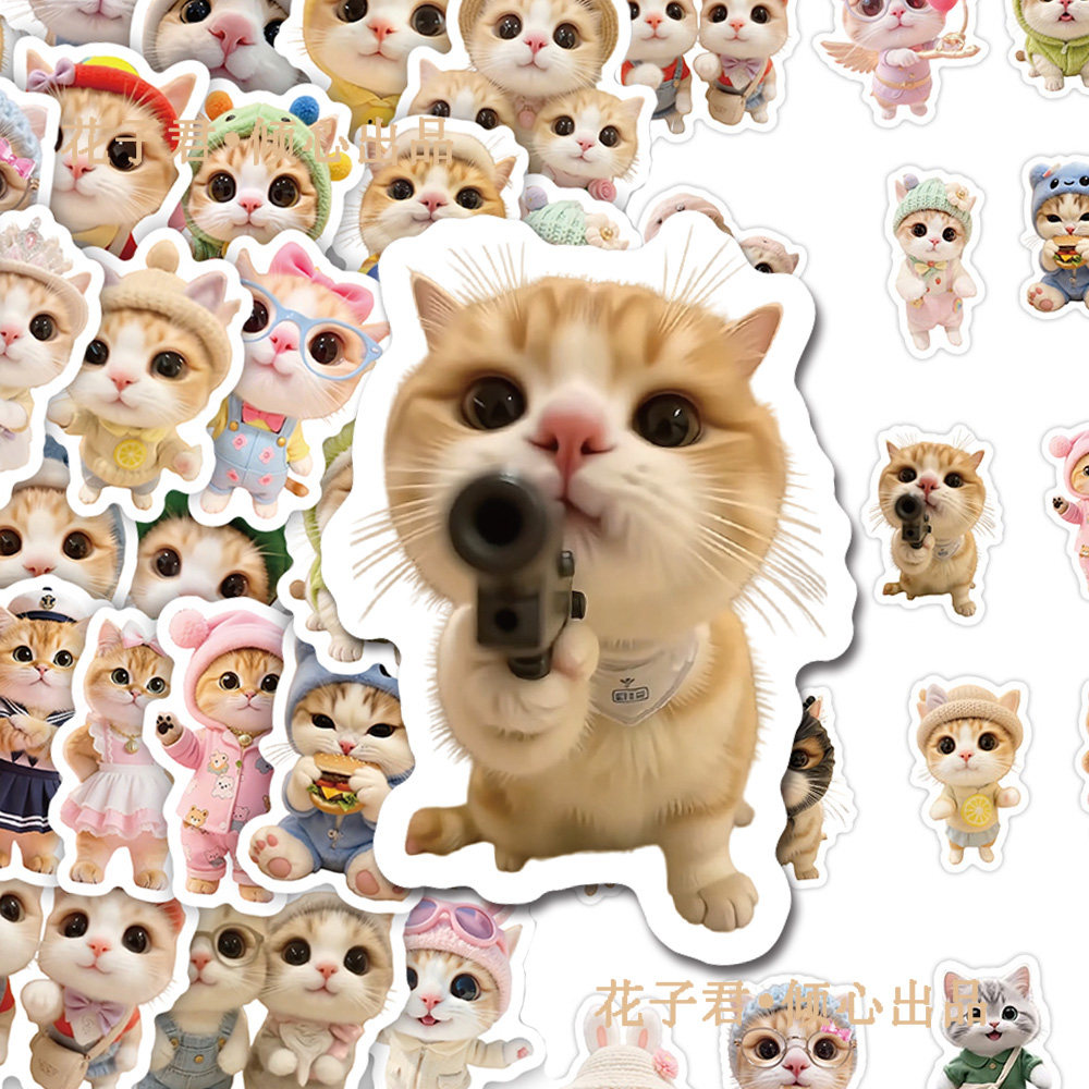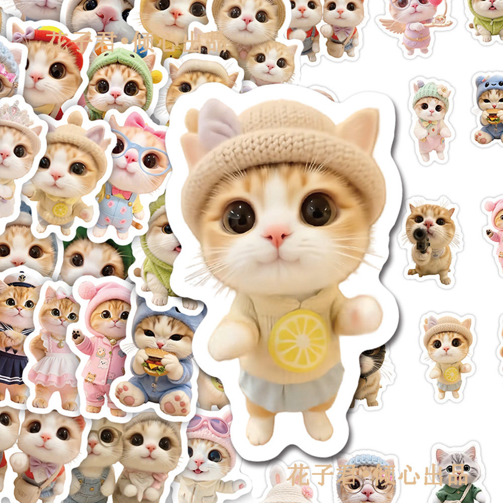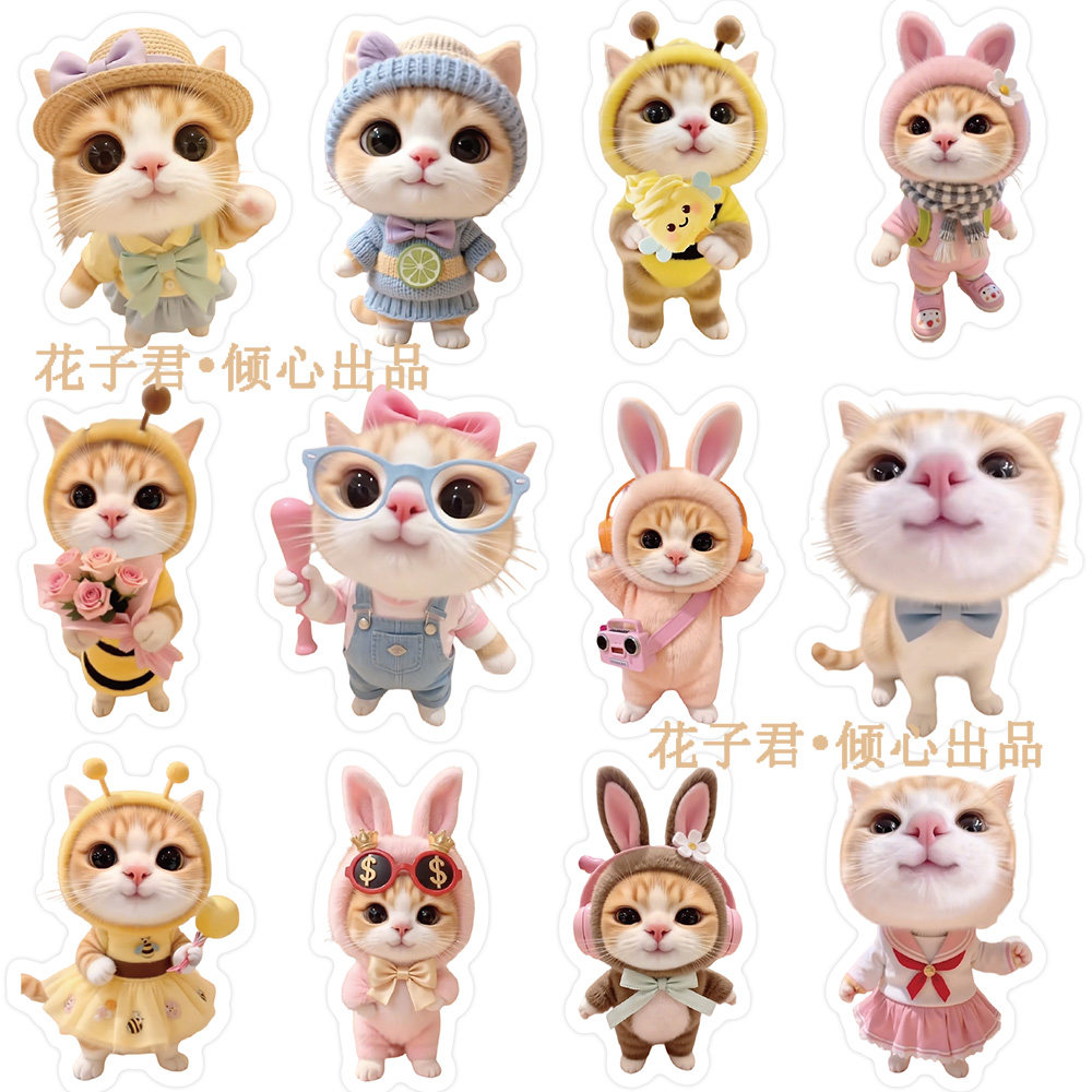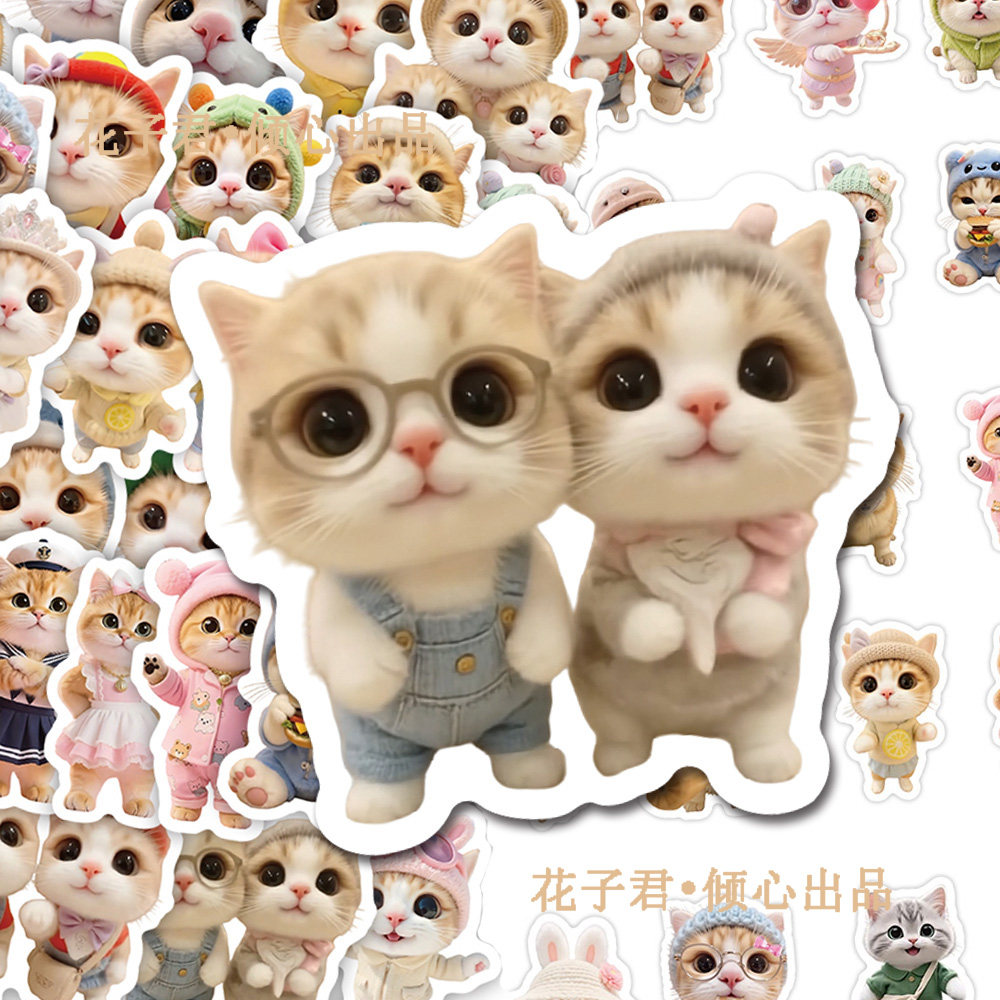 140张网红泥嚎小猫贴纸ins风可爱猫咪趣味热图贴画diy桌面手机壳
