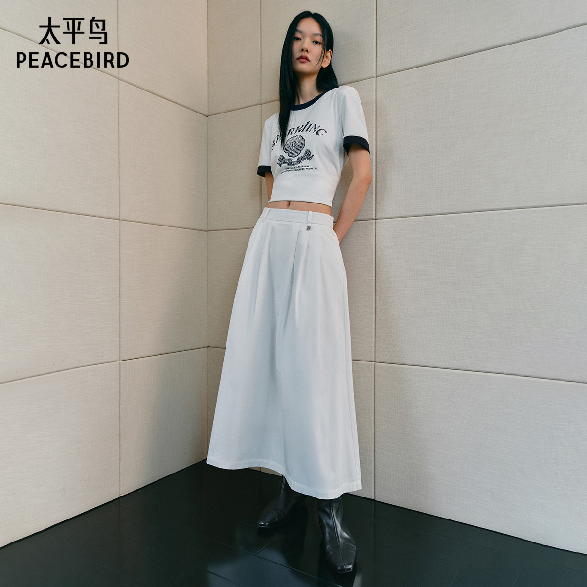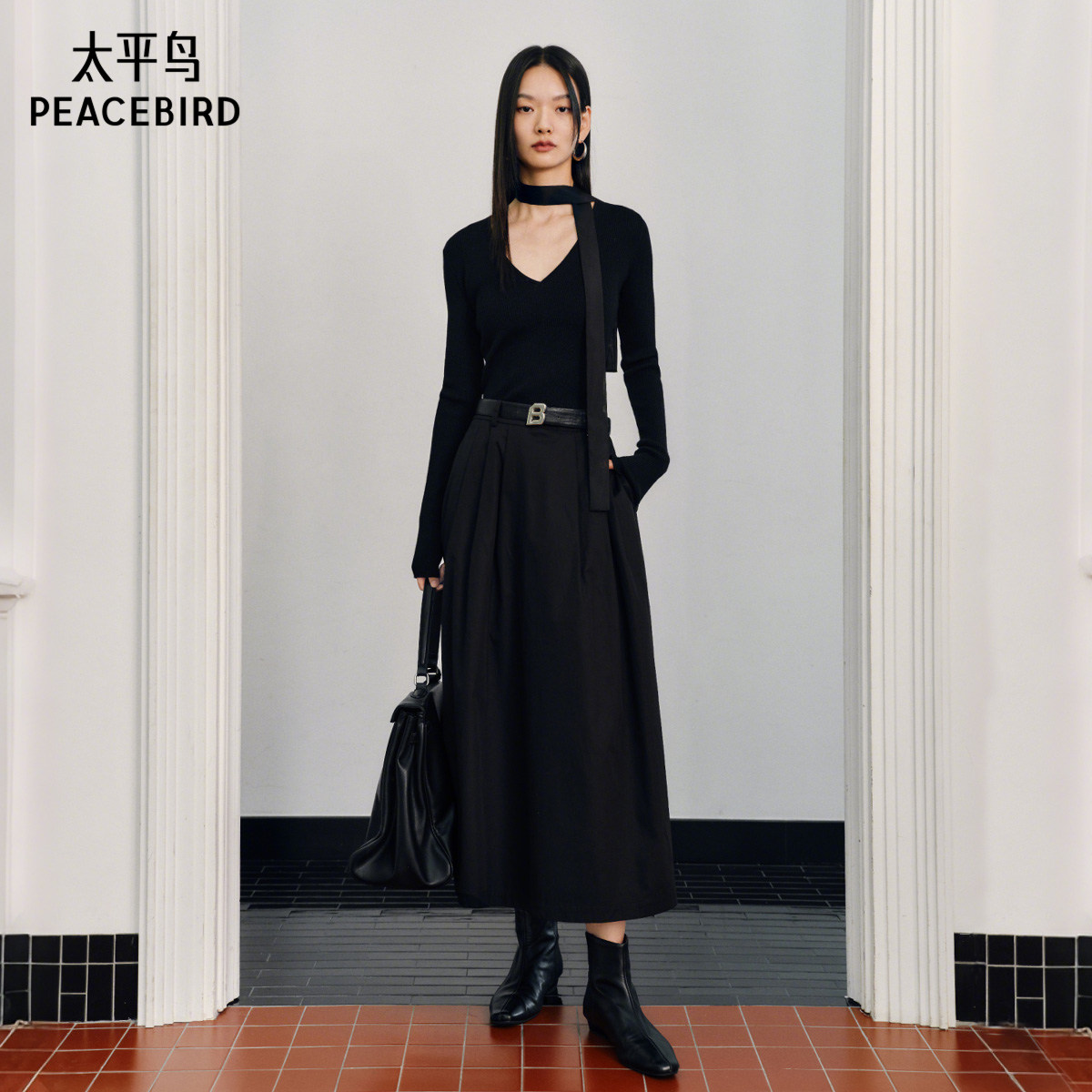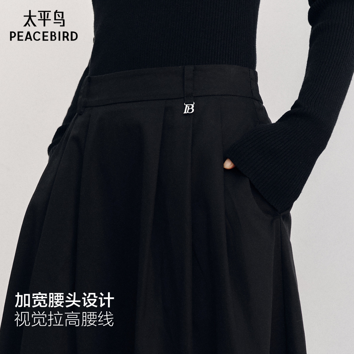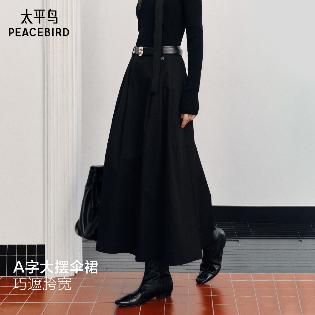 太平鸟百褶长款半身裙女2025春季款高腰伞裙显瘦A字休闲设计感