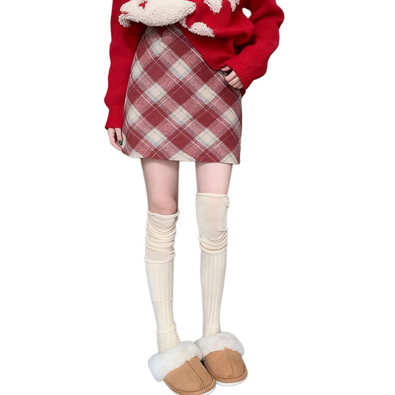 BANANA BABY2025年冬季新款复古格纹半身裙女高腰小个子时尚短裙