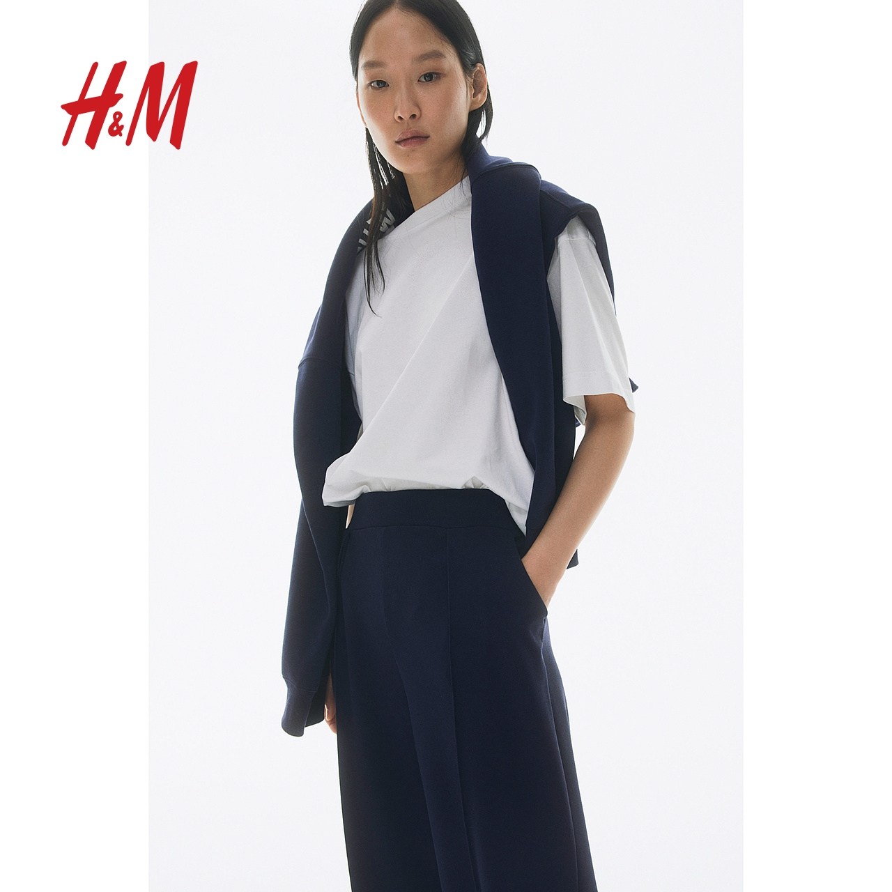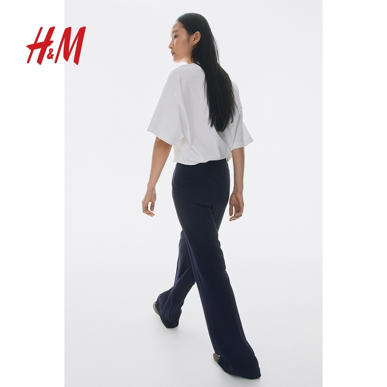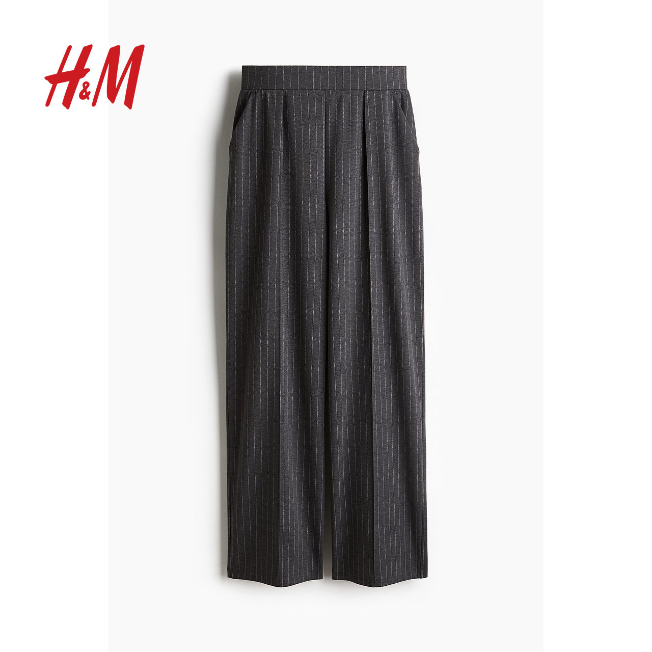 HM女装裤子2025冬季新款时尚休闲潮流阔腿松紧高腰西裤1091186