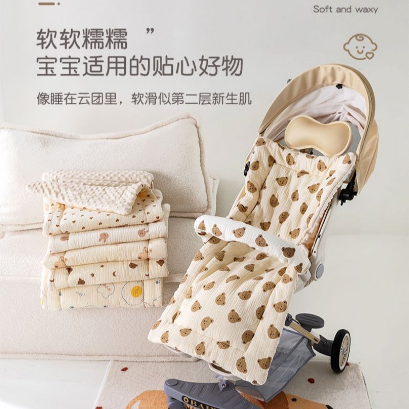 婴儿推车垫棉纱布a类宝宝躺坐垫夹棉豆豆绒用车垫秋冬国货餐椅