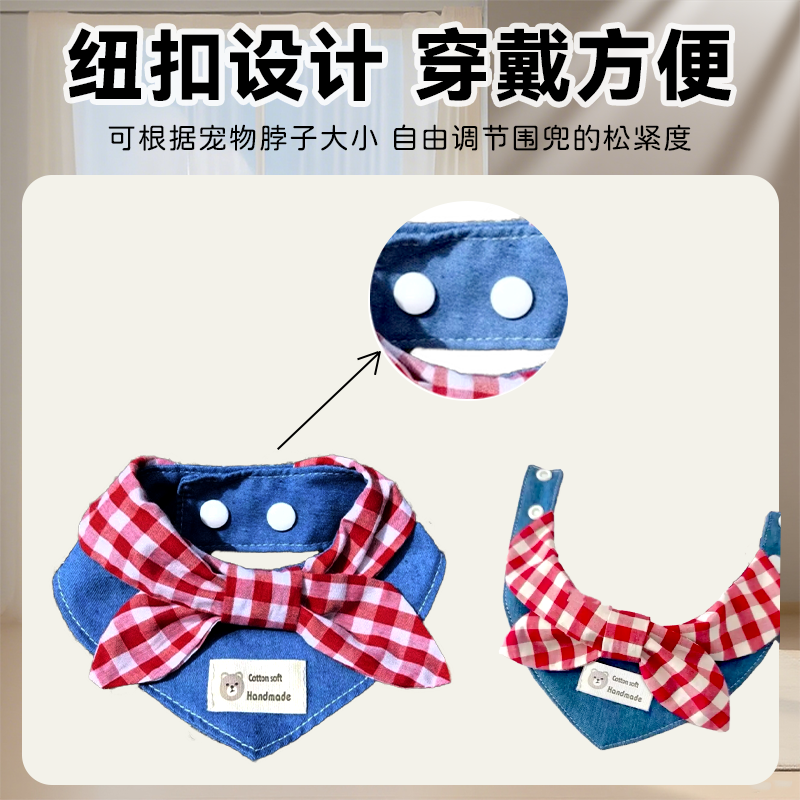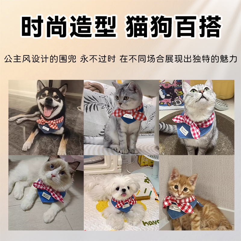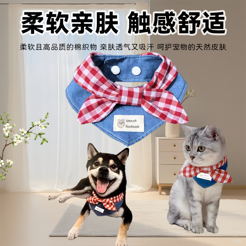 宠物围脖ins风小型犬围兜口水巾三角巾猫咪项圈蝴蝶结可爱韩吃饭