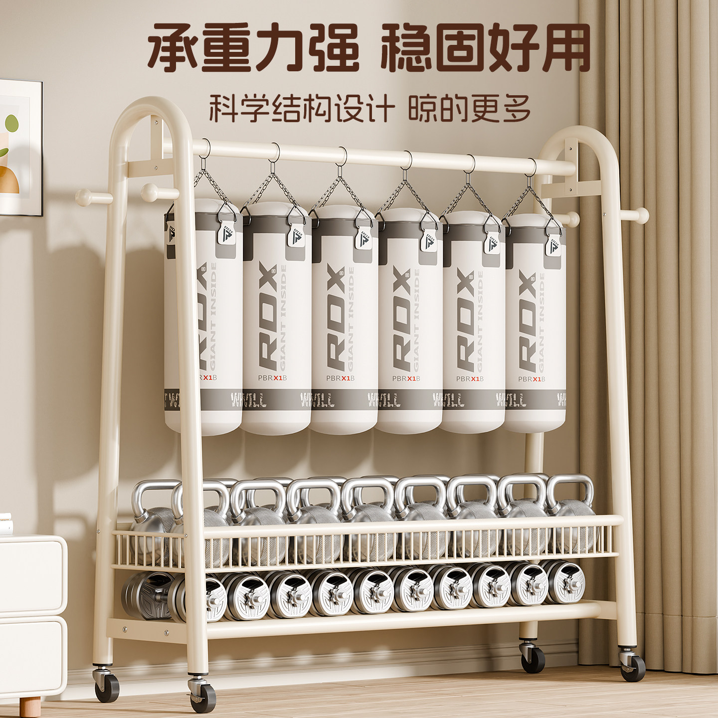 【国补】佳帮手奶油折叠晾衣架室内阳台家用凉衣服落地晒被子神器