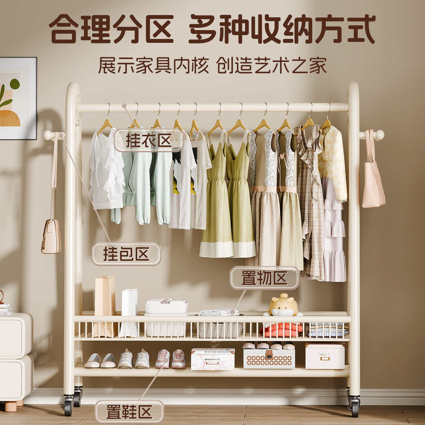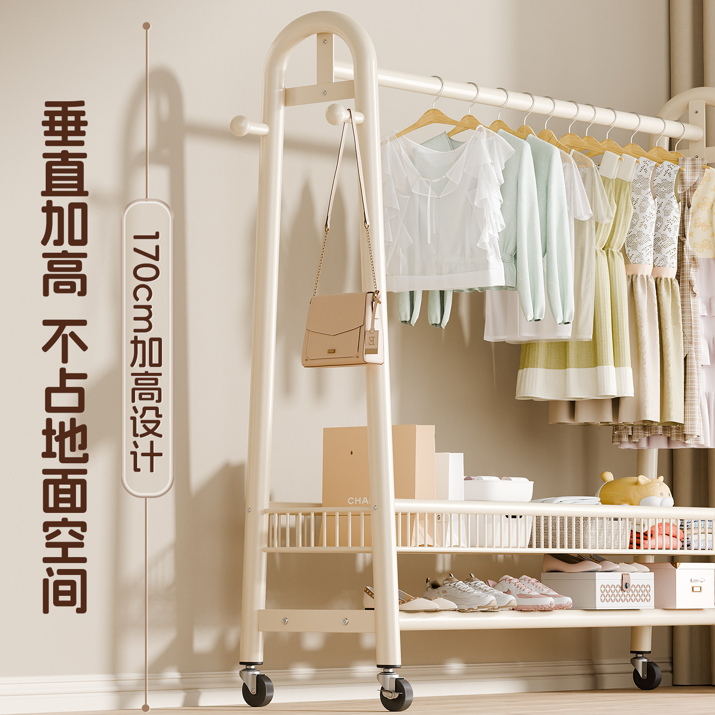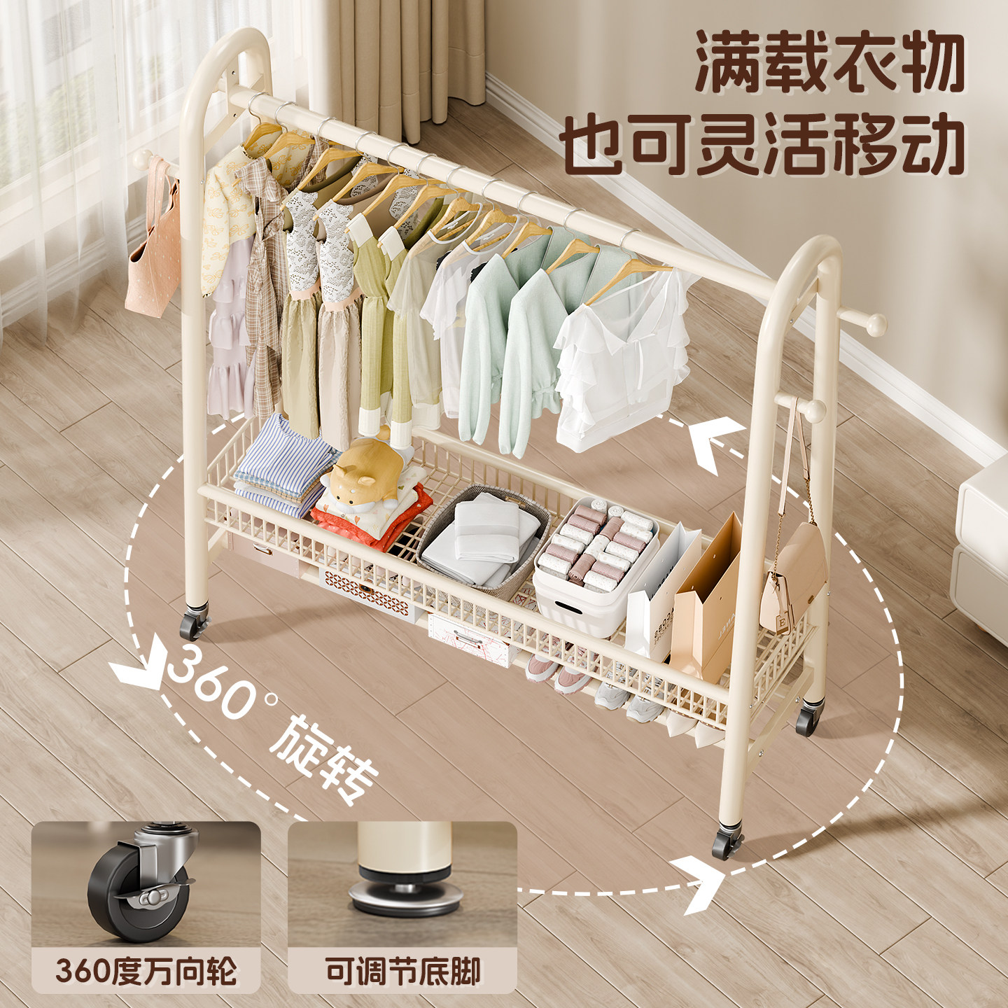 简易衣帽架可移动晾衣架落地室内房间挂衣架子家用卧室衣服收纳架
