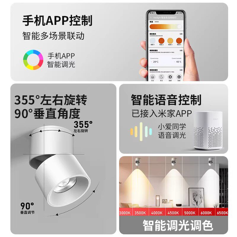 已米家APP智能明装可调角度射灯客厅玄关壁画吸顶天花灯筒灯卧室