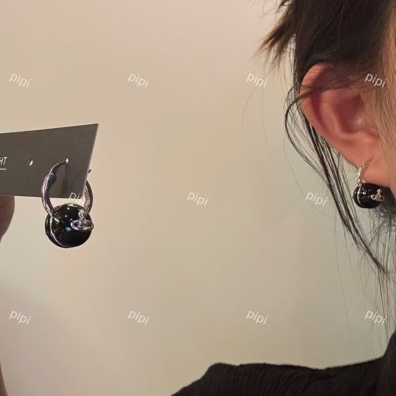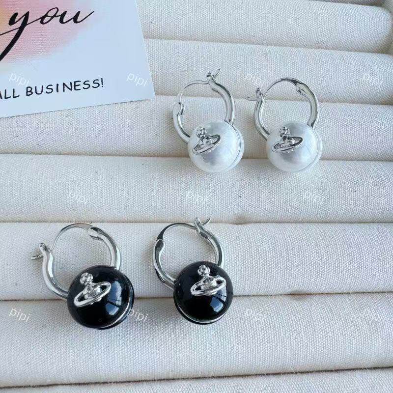 小众设计感白色黑色珍珠土星耳扣耳环耳钉女甜酷百搭个性耳饰品