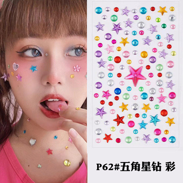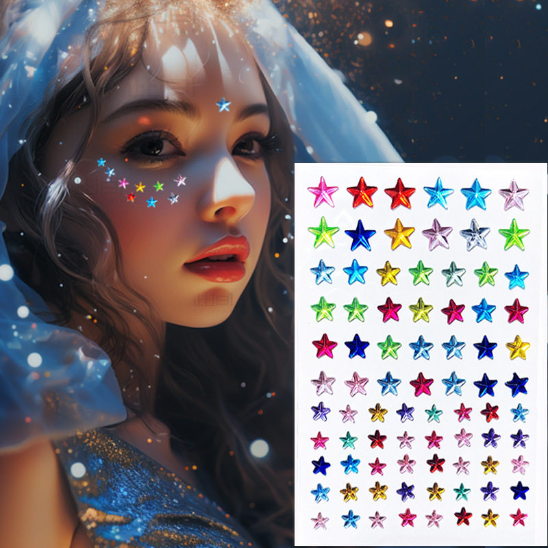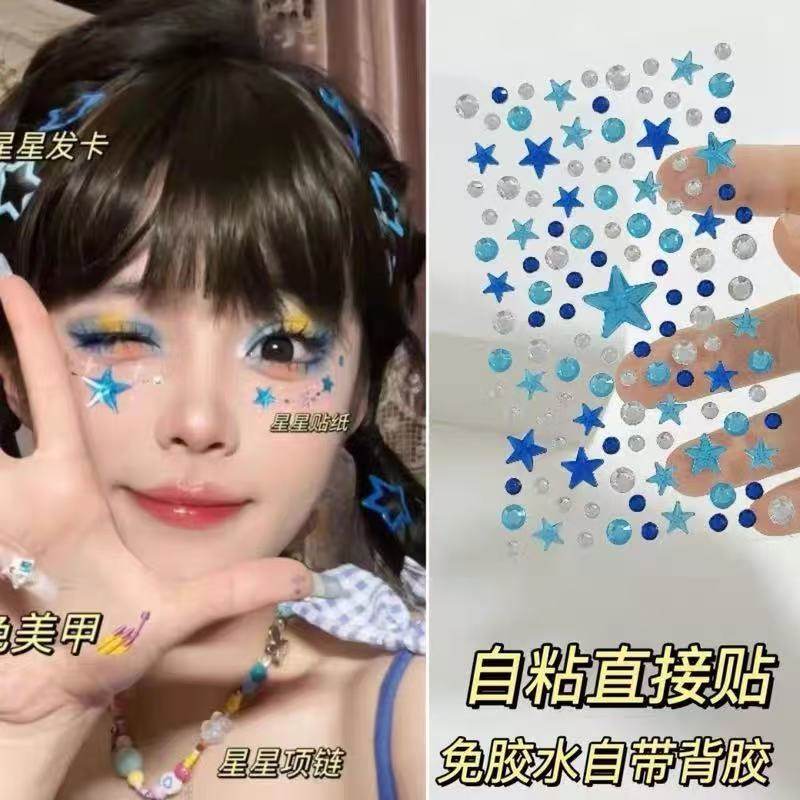 蓝色星星贴钻脸部化妆贴儿童舞台妆表演爵士舞街舞脸贴爱心钻面部妆容贴跨年装饰亮钻黑色五角星妆容亮钻贴脸