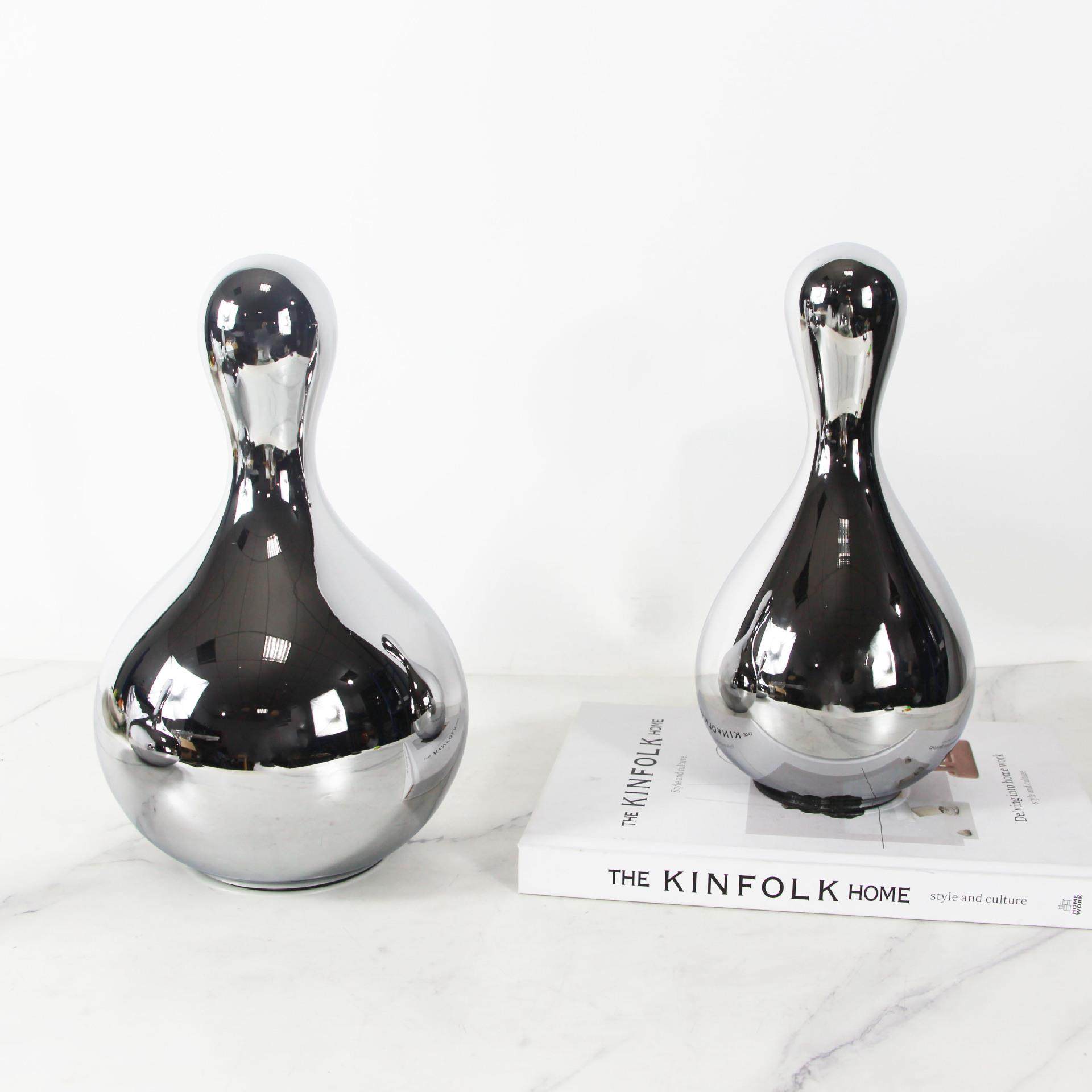 北欧简约镜面水滴造型创意摆件样板房客厅书房家居软装摆设装饰品